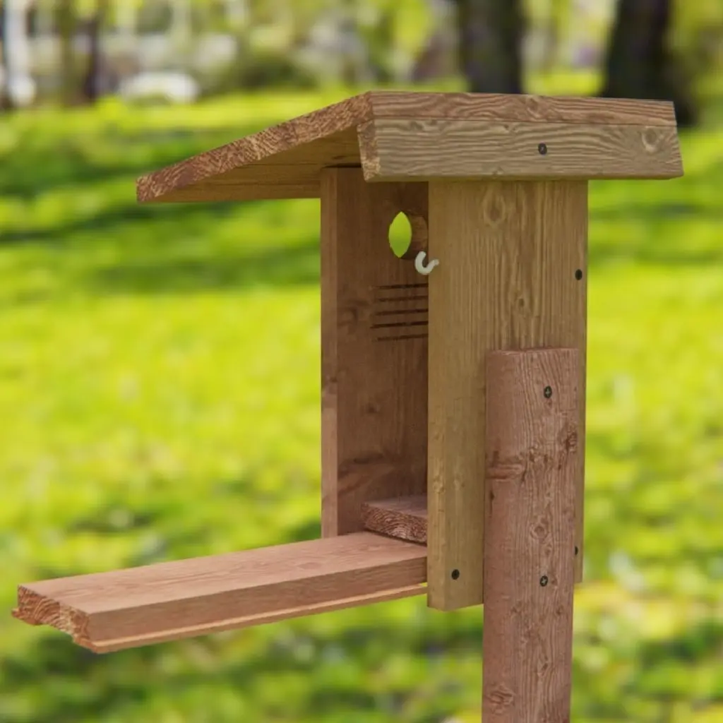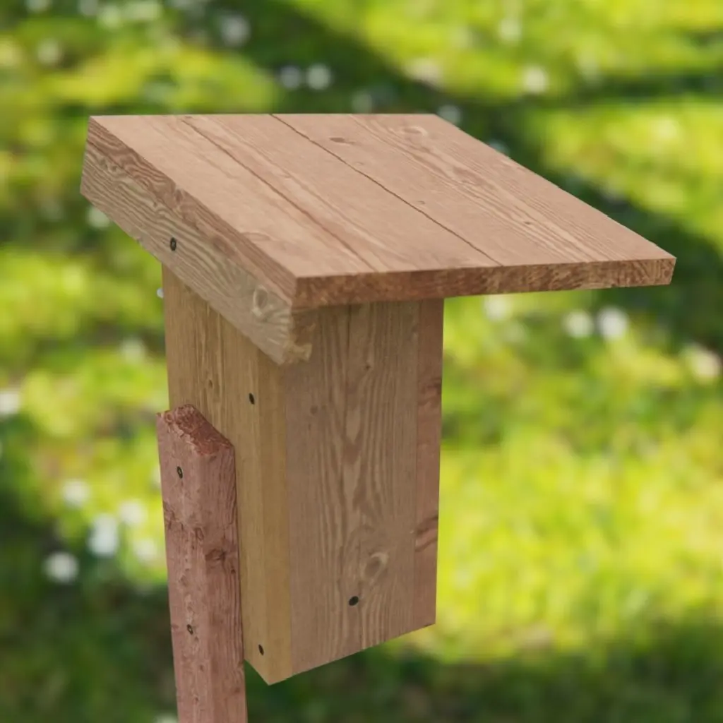 A rustic wooden bluebird house created in Blender 2.78 and rendered with Cycles. The parts are separate, so the door can be rotated to the open position. It has been exported from blender into the following formats: 3ds, OBJ, Collada and STL files. These non-Blender formats do not have the material texture.