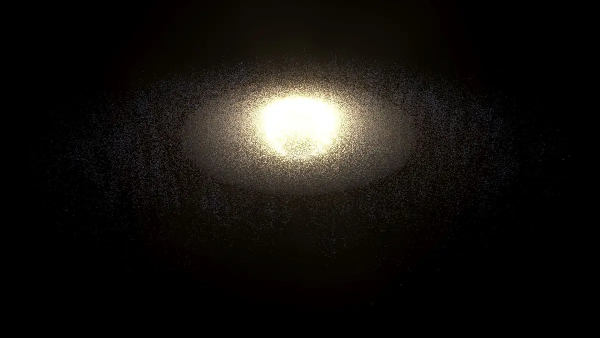 Model is a set of particle systems with elements of different types. Since real Birds of a Feather Galaxy contains hundreds of billions stars, there are no way of simulate realistic view of galaxy directly. So here used textured particles with complex materials, placed along structural parts of Galaxy. Some of them are “clouds” of stars, others are light absorbing dust, emitting hydrogenous clouds, individual super-giant stars, etc. Multi-layered complex shaders was specifically designed to retain detailed and realistic view with extreme closeup and inside-the-galaxy views