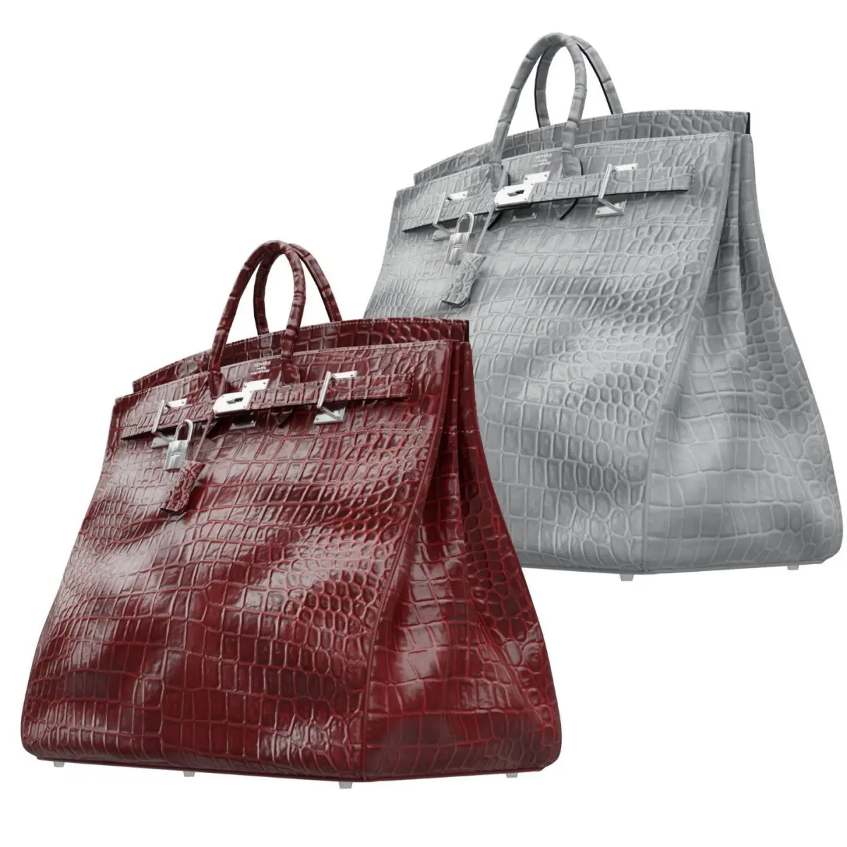 Birkin 55 HAC Croc Bag low poly 3D model.