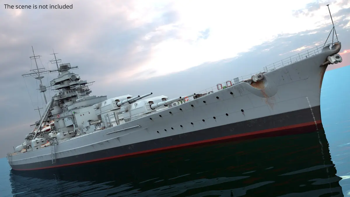Bismarck 1940 Sea Trials Configuration Battleship Gray Rigged for Cinema 4D is fully rigged and is ready to be animated in Cinema 4D. You can easily position it the way you need or animate it the way your project requires. See the screenshots to get an idea of how rigging works. The pose of the model on the render images is an example and can be recreated using rig, it is not initially included into the product.