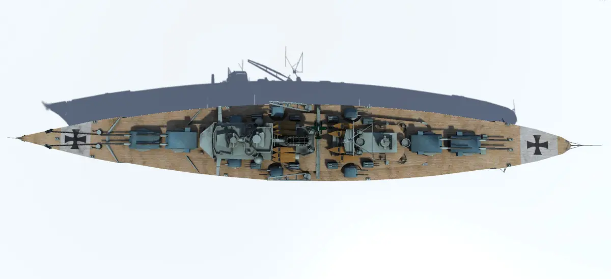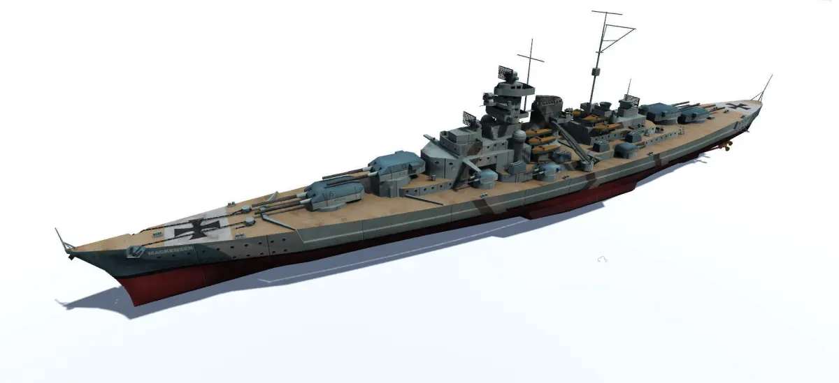 Bismarck battleship lowpoly game model with 2048*2048 PBR textures, and separated propellers, airplane for animation.