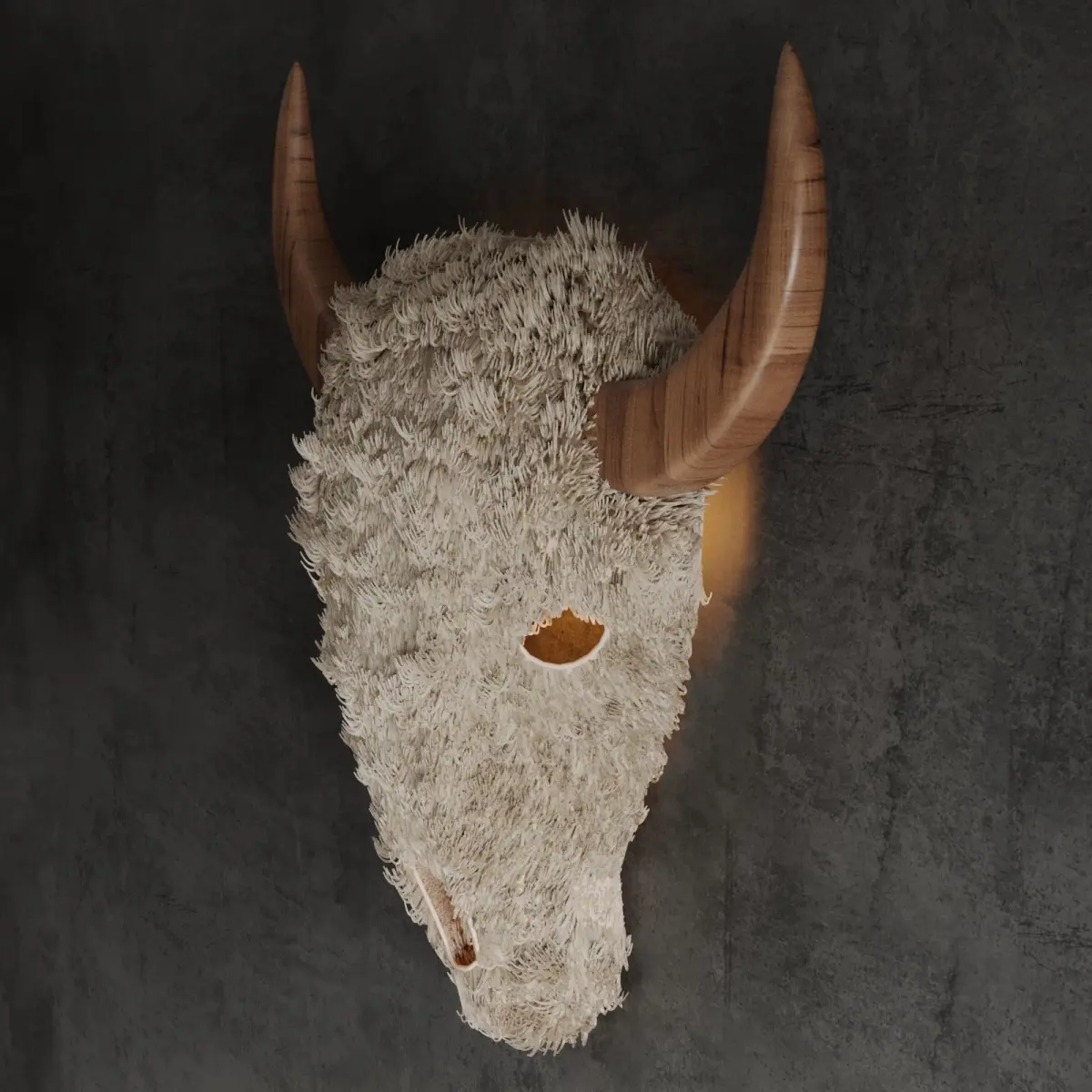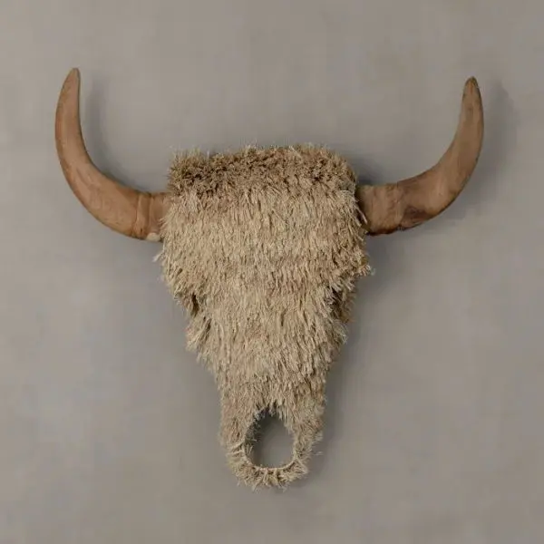 Bison head exudes a bold and commanding presence, while the teak horns and textured finish add a touch of rustic charm. This piece is crafted using sisal which adds to the natural and organic feel.