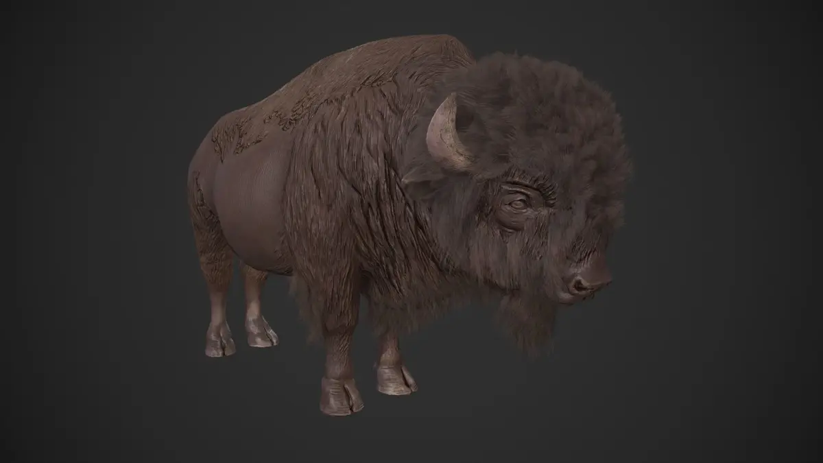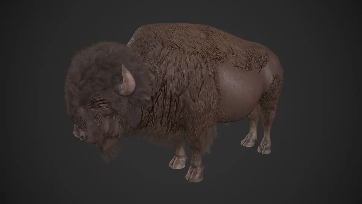 Game-ready Bison asset, with PBR textures included in the files. This has 10990 polys (21558 tris) and 18665 vertices.