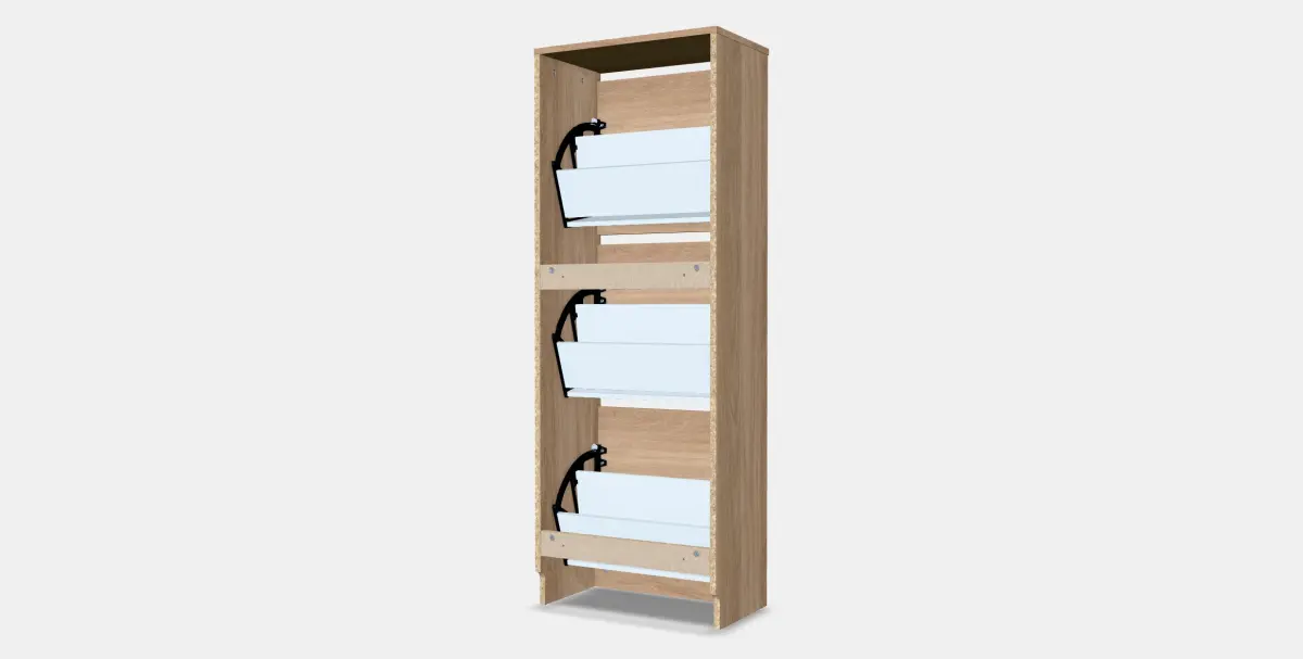Enhance your 3D projects with the BISSA Shoe cabinet with 3 compartments 2 model, which includes detailed PBR materials and requires no third-party renderers or plugins.