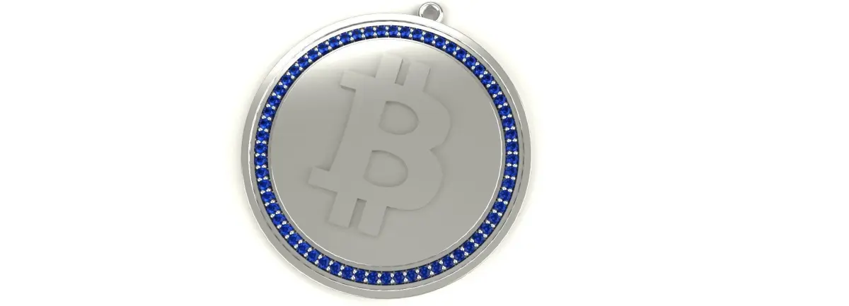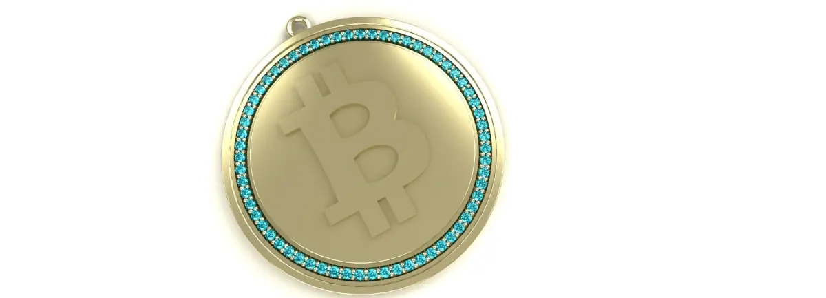 Bitcoin Diamond Pendant Gold Silver Platinum Luxury Round Stones 3D print model