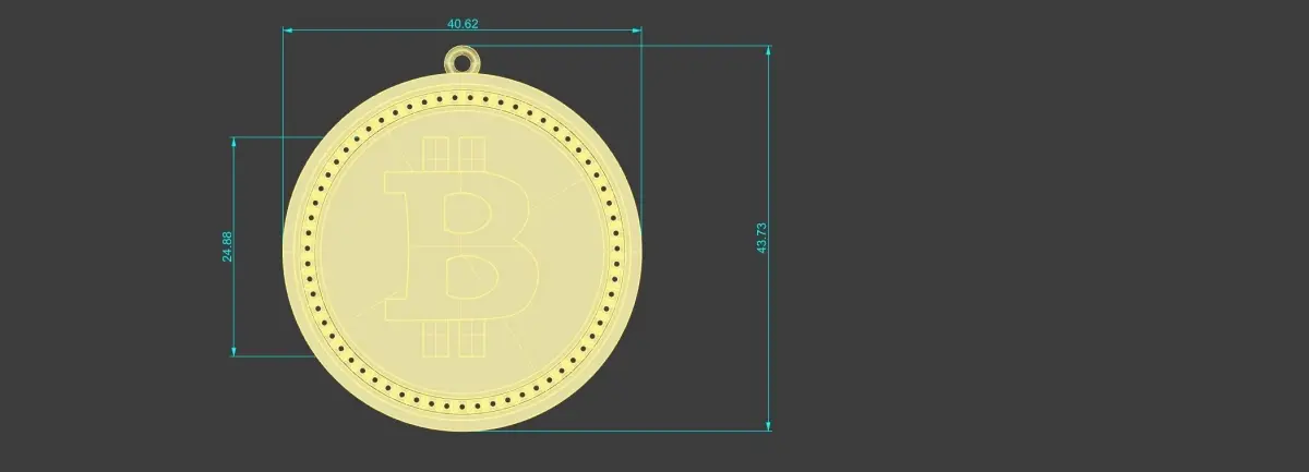 Diamond bitcoin pendant model up for sale. Features sixty three 1.5mm round stones. All other dimensions are in the last two pictures.