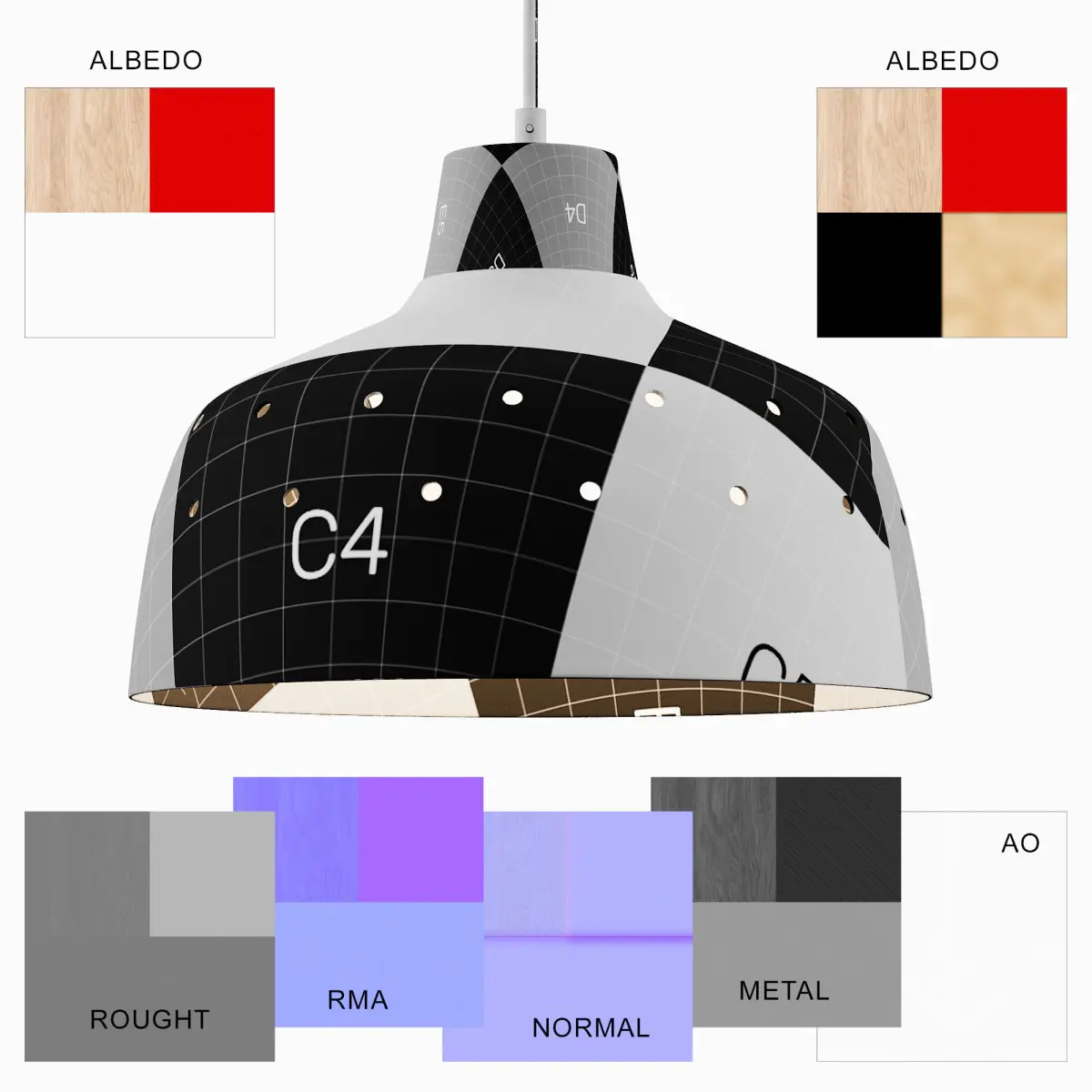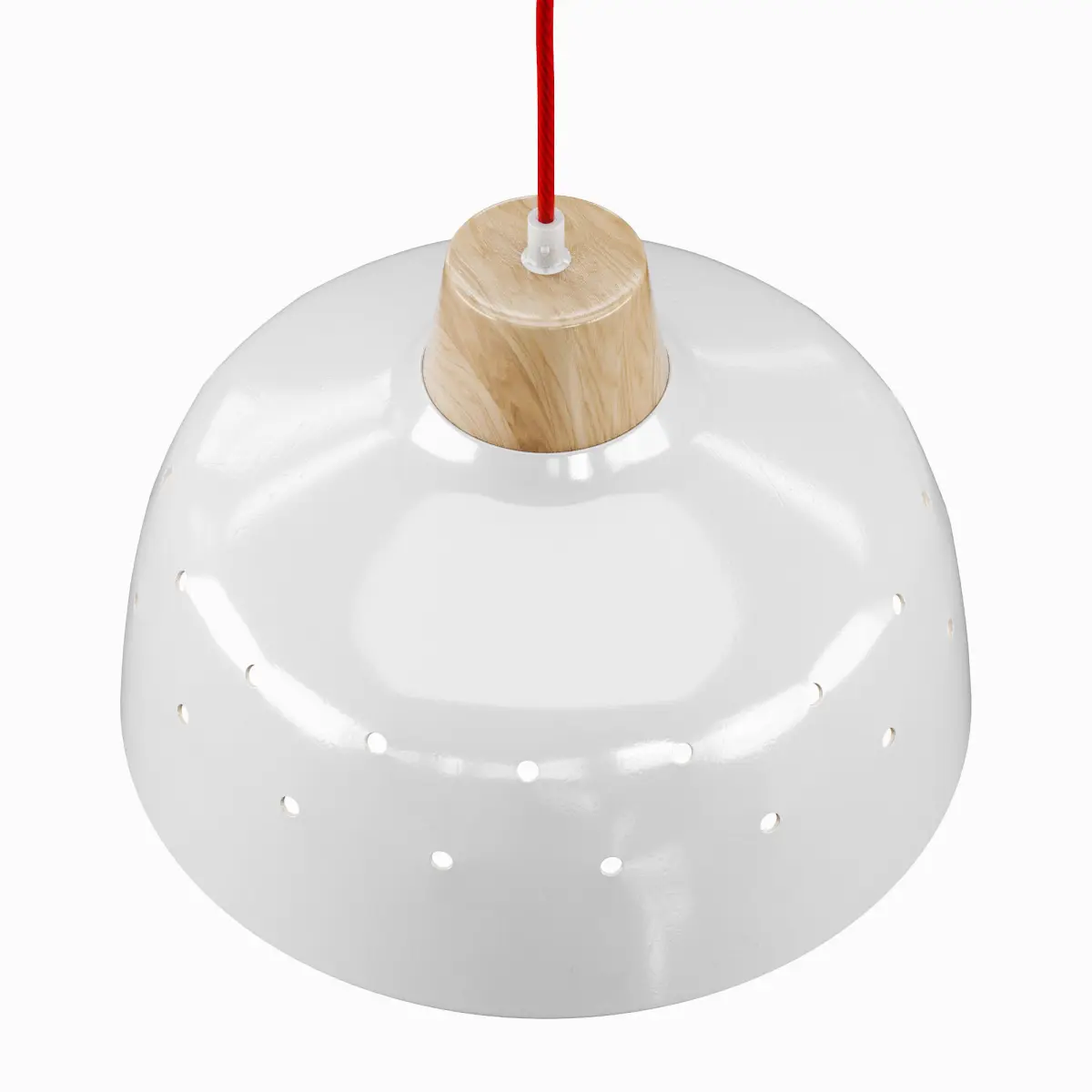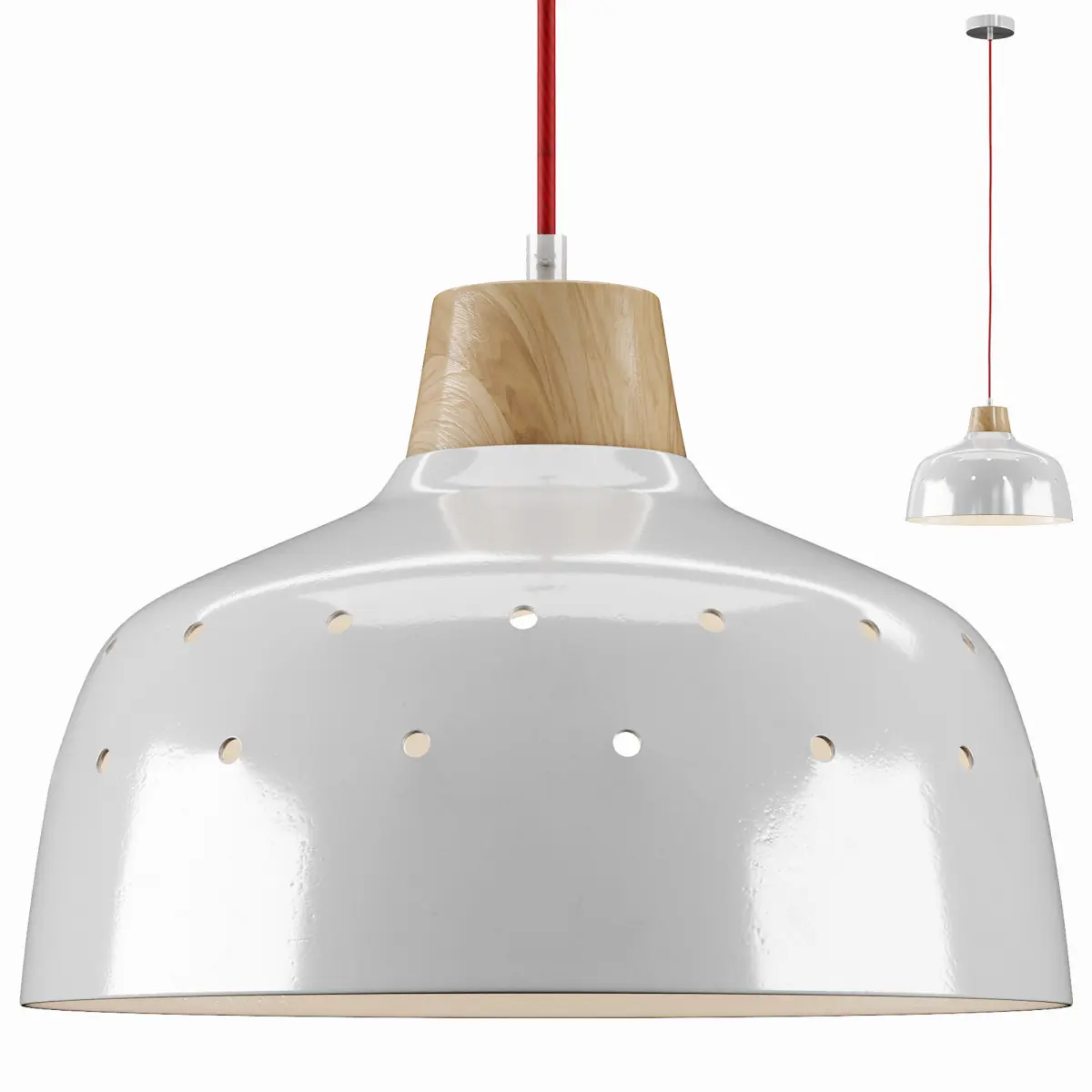 Pendant lamp with metal and natural wood shade. Red cord fitting wireThis 3D model is a reproduction inspired by a real product.