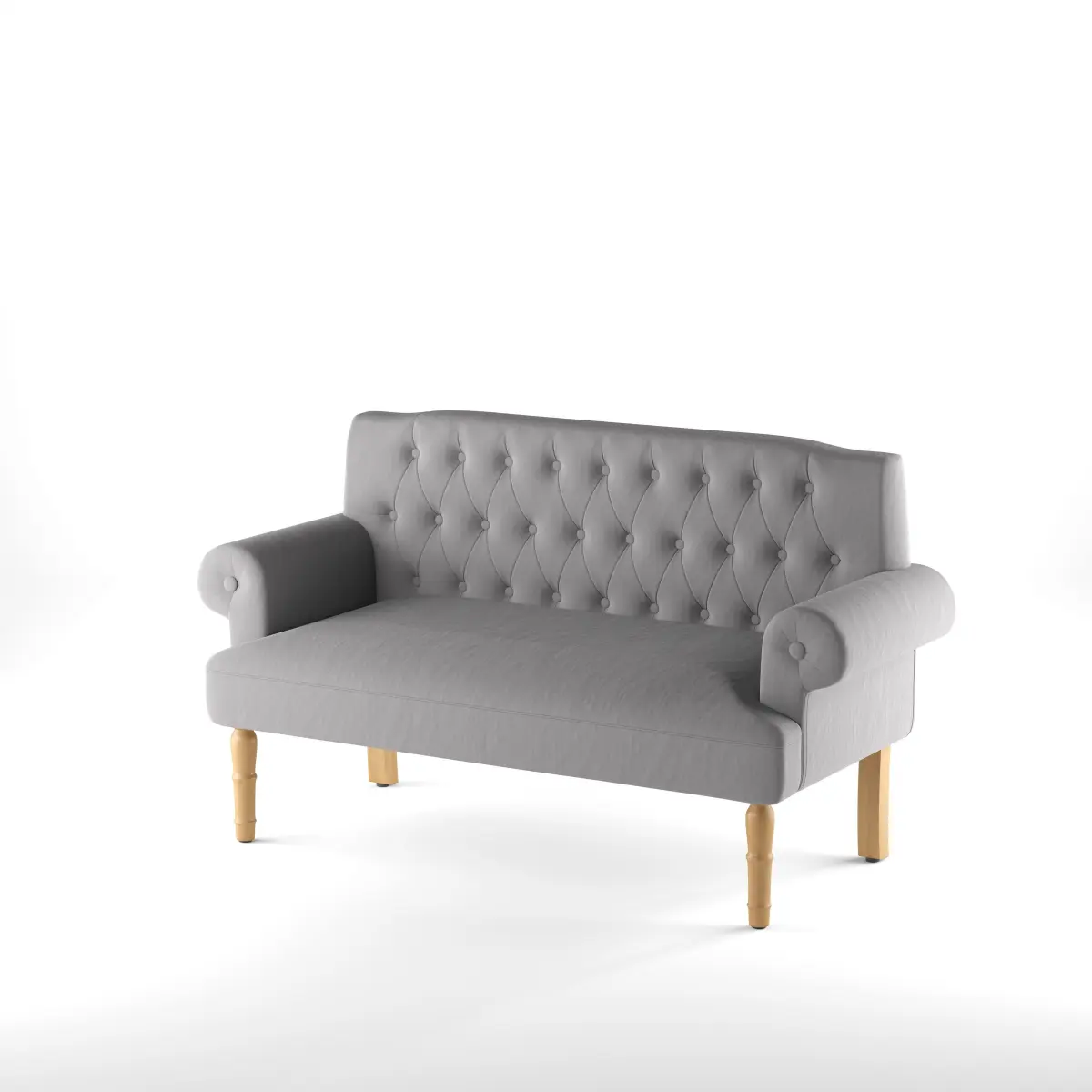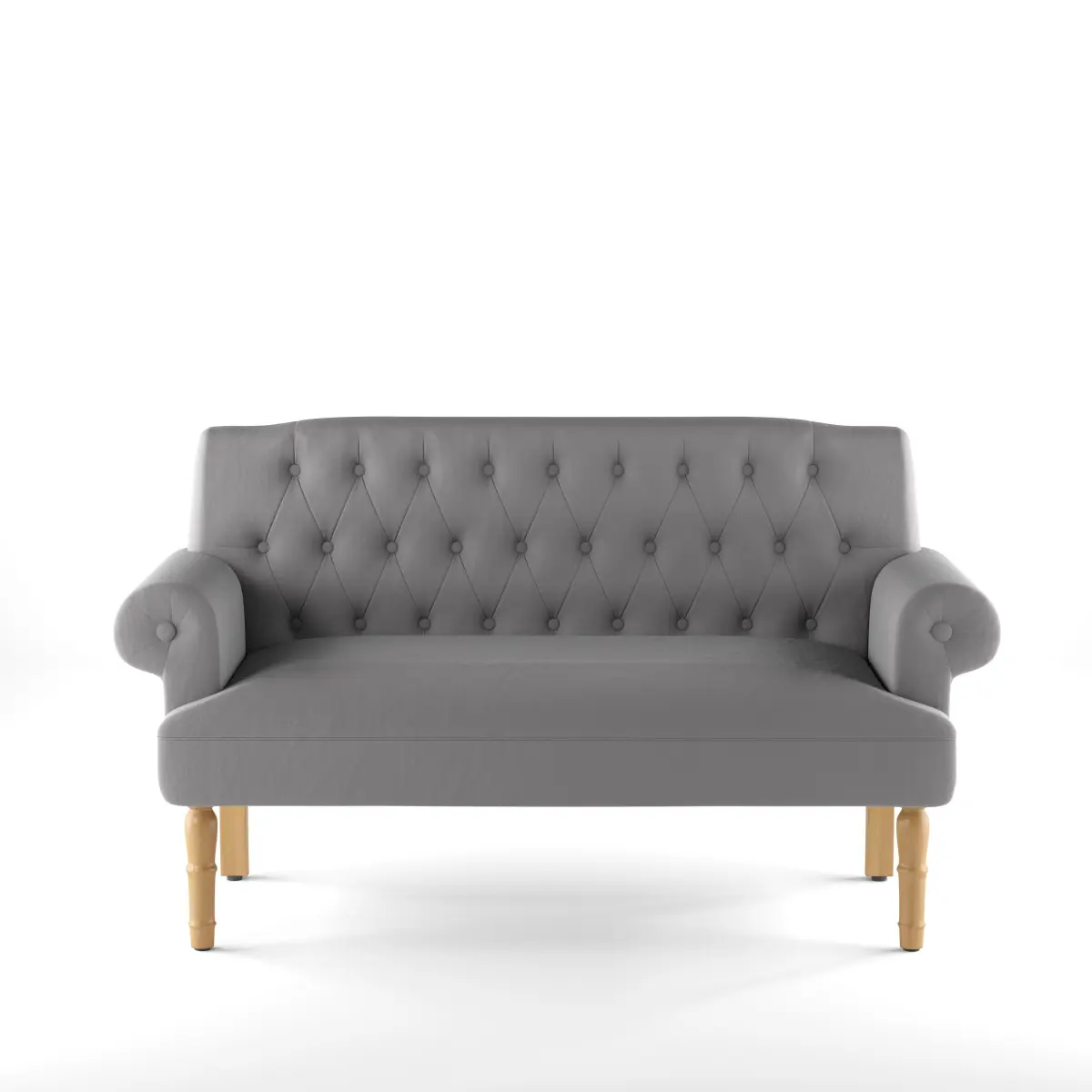 Solid Wood• Seats 2• Overall Depth32 ''• Overall Height35 ''• Overall Width59 ''• DescriptionThis settee is the perfect pick for a small-scale seating ensemble or a bedroom accent. Made from solid maple wood, it offers a traditional appearance with rolled arms and turned legs finished in walnut. Foam padding and web suspension add comfort to the seat, while 100% polyester upholstery ties it all together with button tufts and a neutral solid hue.Product Details• Upholstery Material: 100% Polyester• Leg Material: Solid Wood• Product Care: Using a warm damp cloth to clean the settee is recommended, as well as any polyester blend friendly upholstery cleaner• Design: Standard• Adult Assembly Required: YesShow Less• Weights & DimensionsOverall35'' H x 59'' W x 32'' DSeat21'' H x 44.5'' W x 20.5'' DArm Height - Floor to Arm25.5''Back Height - Seat to Top of Back25''Leg Height - Top to Bottom10.5''Minimum Door Width - Side to Side16.74''Overall Product Weight60 lb.• Seat thickness: 10• The distance between the front legs is 53.75''.• Backrest width: 55• SpecificationsAdditional Documentso Installation & Assembly (.pdf)FeaturesProduct TypeSetteeDesignStandardSeating Capacity2Upholstery Material100% PolyesterFrame MaterialSolid WoodWood SpeciesRubberwoodLeg MaterialSolid WoodLeg Material DetailsMapleSeat Fill MaterialFoamSeat ConstructionWeb SuspensionBack Fill MaterialFoamTufted CushionsYesToss Pillows IncludedNoProduct CareUsing a warm damp cloth to clean the settee is recommended, as well as any polyester blend friendly upholstery cleanerDurabilityMildew Resistant; Fade Resistant; Scratch ResistantFire ResistantYesArm TypeRolled ArmSeat StyleSingle cushion seatBack TypeTufted backWeight Capacity1000 PoundsSupplier Intended and Approved UseResidential UseCountry of OriginMade in ChinaAssemblyAdult Assembly RequiredYesSuggested # of People2Additional Tools RequiredAll Tools IncludedLevel of AssemblyFull Assembly NeededWarrantyCommercial WarrantyNoSpecificationsCAL TB 116 CompliantYesCAL TB 117-2013 CompliantYesCertificationsYesCommercial OR Residential CertificationsYesAZO freeYesWARNINGCalifornia's Proposition 65