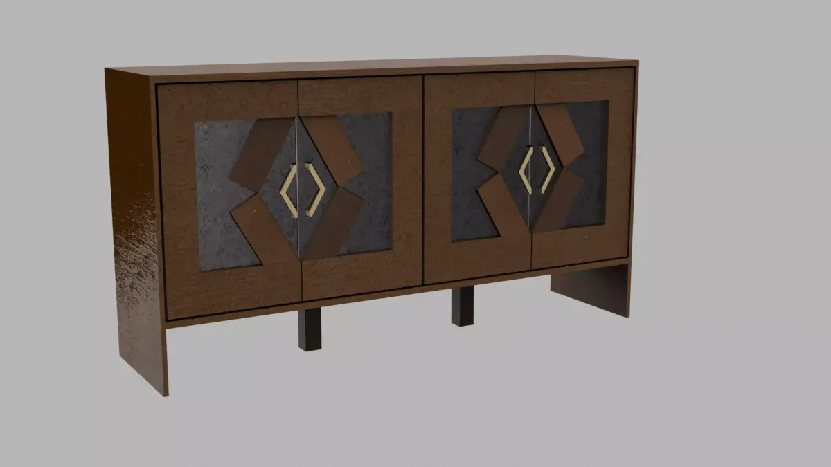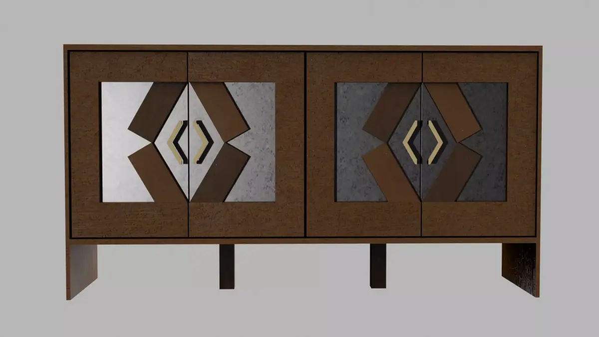 This black and brown vintage sideboard buffet combines timeless craftsmanship with distinctive character. The piece features rich wood tones accented by deep black highlights for a bold, elegant contrast. Each door showcases unique decorative styling that adds charm and visual interest, while the brass hardware provides a warm, classic touch. Perfect for dining rooms or living spaces, this sideboard offers both storage and style with a refined vintage appeal.