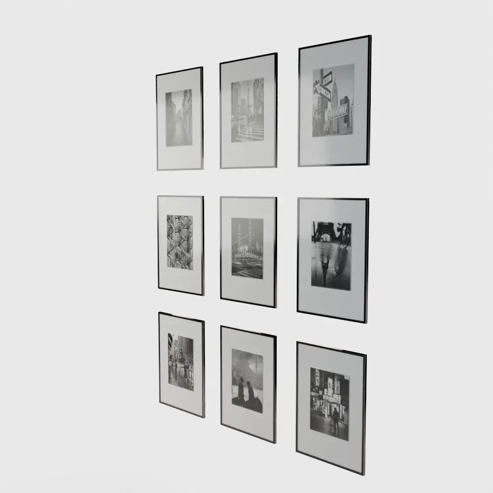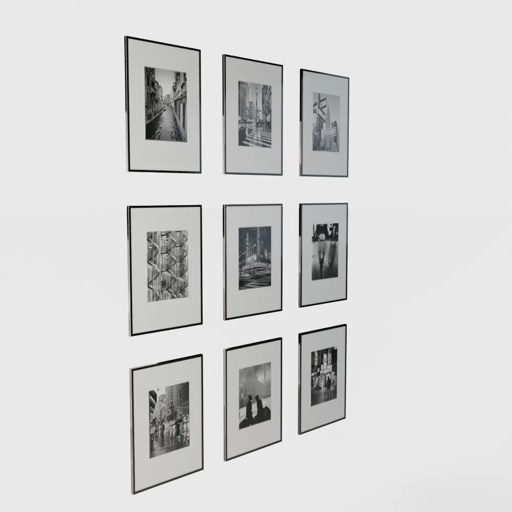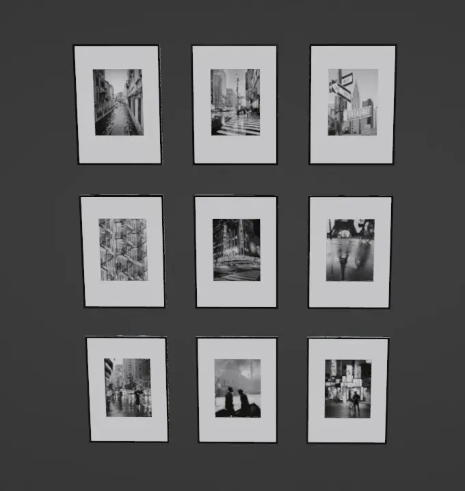 This Blender 3D model presents a framed black and white photographic wall art featuring iconic or abstract cityscapes—ideal for adding urban sophistication and a timeless aesthetic to interior renders. Designed for modern living rooms, office spaces, or gallery walls, the model provides a sleek and realistic touchpoint for architectural and design-focused scenes.