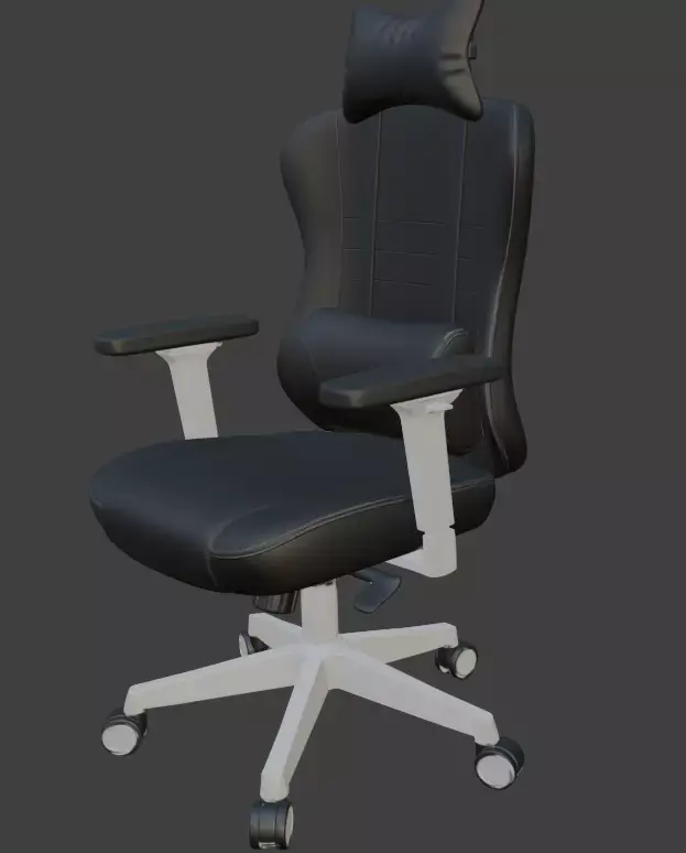 Premium, fully detailed 3D model of a modern racing-inspired gaming/office chair in sleek black PU leather with white high-gloss frame and five-star base. Includes removable headrest and lumbar support pillows, adjustable armrests, and realistic stitching. Perfect for esports setups, streaming rooms, modern offices, cinematic renders, VR environments, architectural visualization, and real-time games.Real-world scale (centimeters), clean quad topology, subdivision-ready, non-overlapping UVs. Comes with 4K PBR textures (BaseColor, Roughness, Metallic, Normal, Height, AO). All parts logically named and grouped. Ready for Blender, Maya, 3ds Max, Cinema 4D, Unreal Engine, Unity—no plugins required.