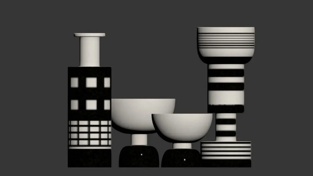 Black and white vase set by Ettore Sottsass 3D model