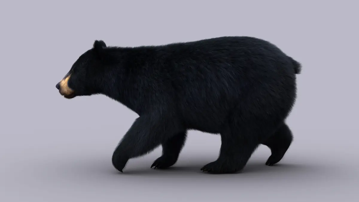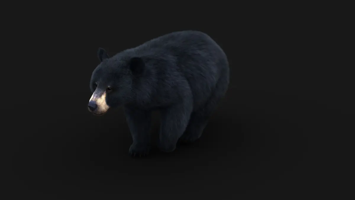 High Detailed Photorealistic Black Bear; FULLY RIGGED AND ANIMATED, UVunwrapped and smoothable, made with Maya. Xgen-core for hair.