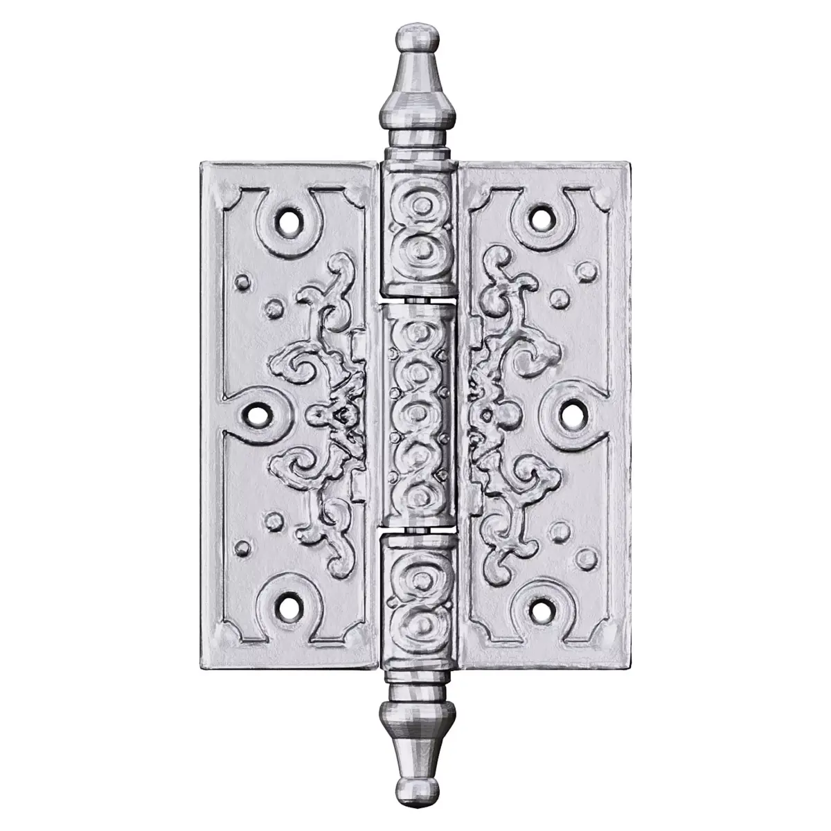 Name: Black Cabinet Hinge Wrought Iron Butt Hinges Victorian Steeple Tip Flush HingesFormat: 3Ds Max 2016Export: FBX, OBJRender: Corona Renderer 7Polys: 160656Verts: 160593Units: MillimetersDimension: 72.36 x 3.68 x 40.45Description: A detailed 3D model of a black wrought iron cabinet hinge with Victorian-style steeple tips. Perfect for antique restorations or traditional cabinetry, this flush hinge adds historical character and durable functionality to doors or furniture.