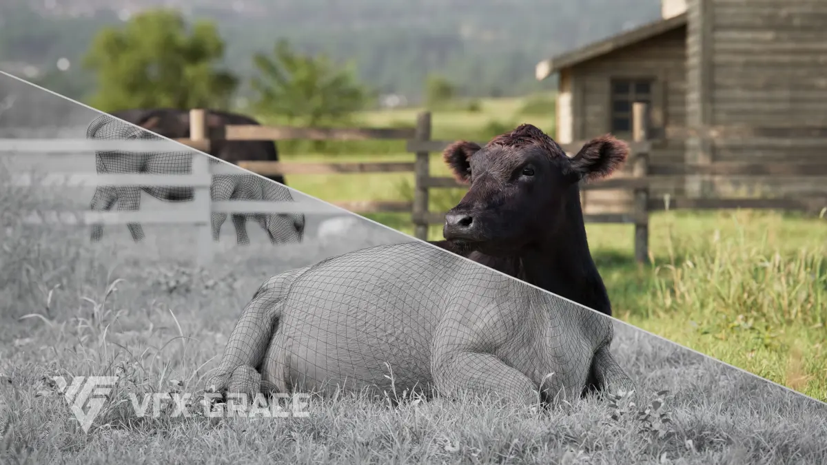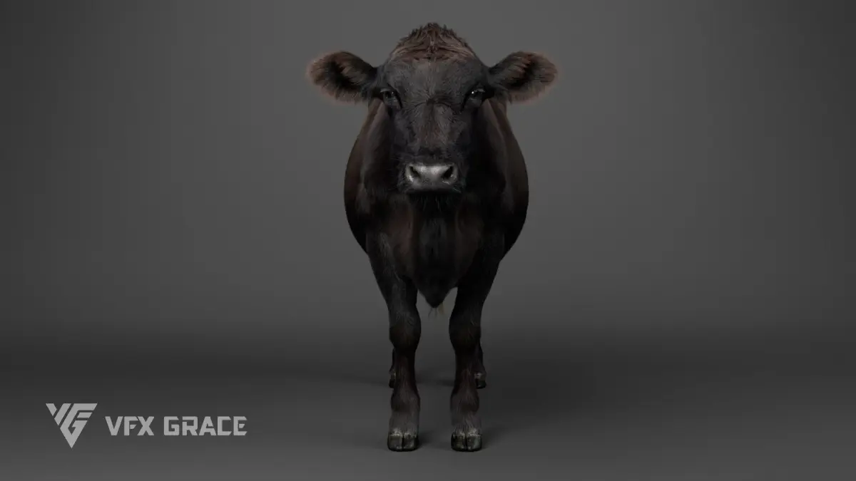 This is a high-quality black cattle model with maps, fur, rigging and 4 animations. The fur is created in XGen interactive with enough details, and all textures are rendered with Arnold renderer for realistic effects. The rigging is created with reference to real bones, making the animation in line with natural movements. The model is created with Maya 2024 at real-world scale.