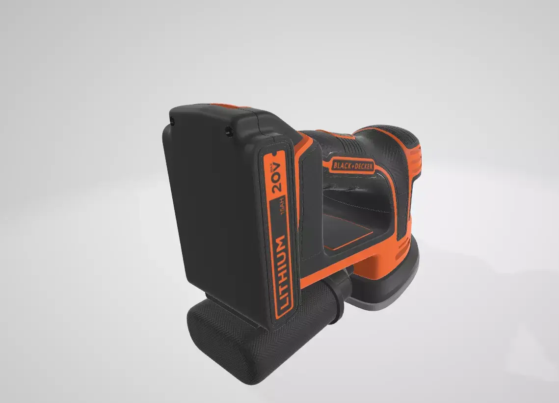 BLACK+DECKER 20V MAX* Sheet Sander-created by blender mesh clean, soft, smooth. -mesh count less than 200000 -created by mesh 4 -main axis (0,0,0) is located at the lowest center point of the product -attached material with substance paint -exported to glb view -has accompanying textures: diffuse, normal, hight, ao, roghness