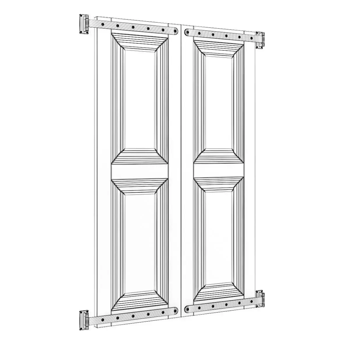 3D model of openable black external shutter. Render scene is not included.