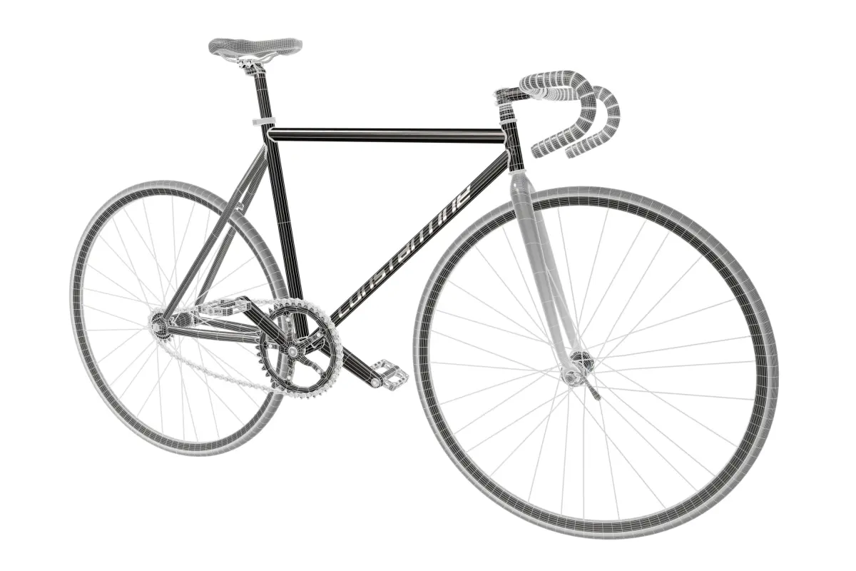 This is a highly detailed PBR (Physically Based Rendering) 3D model of a sleek black fixed-gear bicycle, commonly known as a Fixie. The model captures the minimalist aesthetic and robust construction characteristic of fixed-gear bikes, featuring drop handlebars, a clean frame, and essential components for urban cycling or track racing. Ideal for adding realism to cityscapes, street scenes, sports visualizations, or any architectural render requiring modern mobility elements.