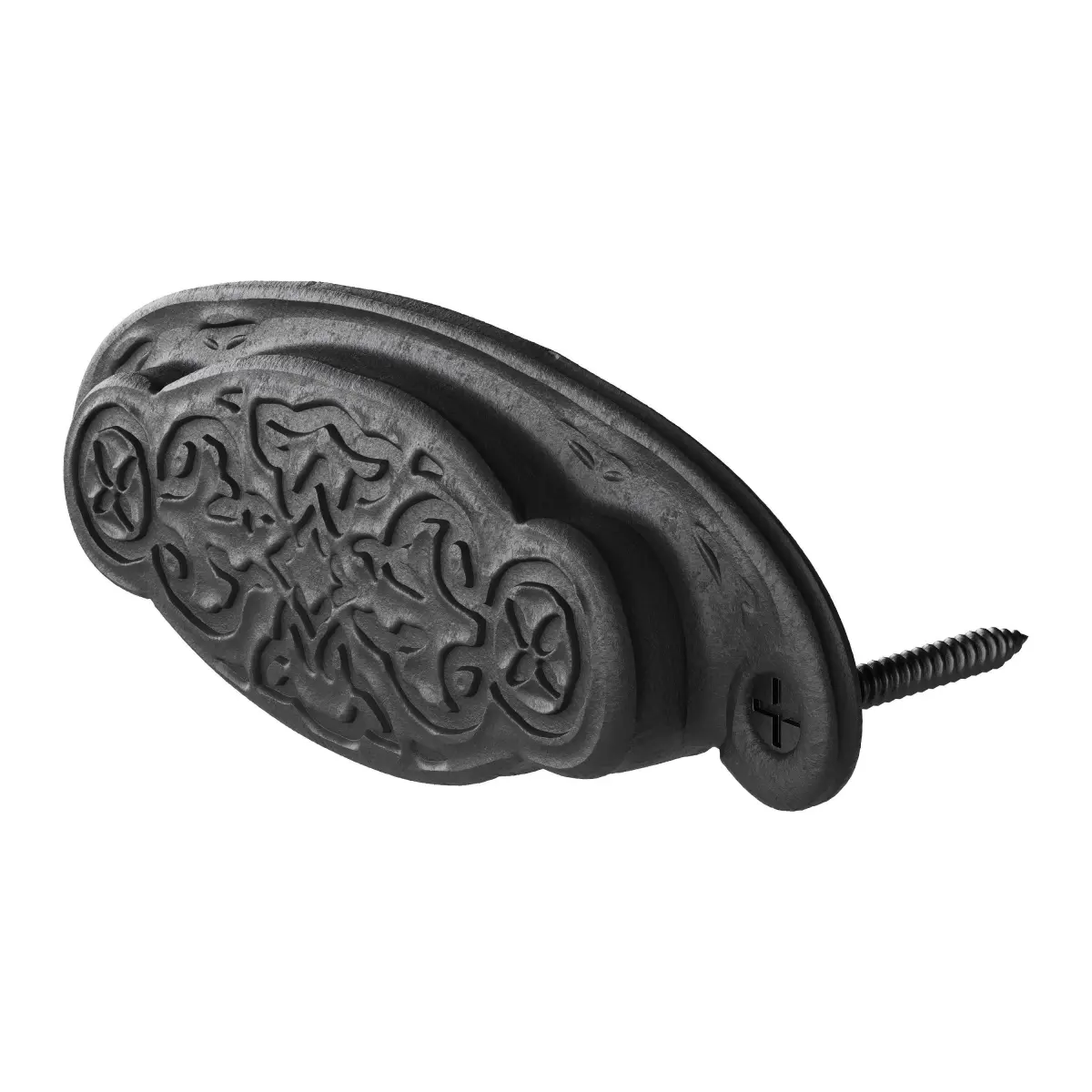 Name: Black Floral Cabinet Drawer Cup Bin Pull Wrought IronFormat: 3Ds Max 2016Export: FBX, OBJ, MLTRender: Corona (7)Polys: 41928Verts: 41907Units: MillimetersDimension: 95.49 x 35.31 x 115.94