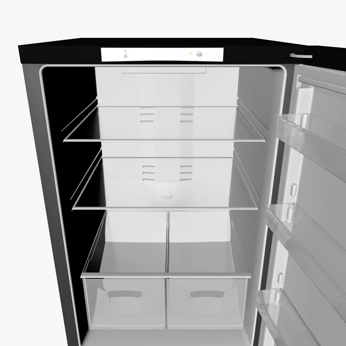 Three-dimensional model of the refrigerator, detailed design, drawers, shelves can be moved and placed, or removed, doors opened and closed. The engine compartment has also been worked out. on the top of the panel there is a power button with indicator lights, it is possible to adjust the light of the lamp. Can be used in video, animation, game, photo. The model contains 2d targa textures 4096x4096. PBR textures TARGA and JPEG format 4096x4096 Base_color, Heigt, Metallic, Roughness, Emissive, Coat_opacity, Normal_OpenGL.