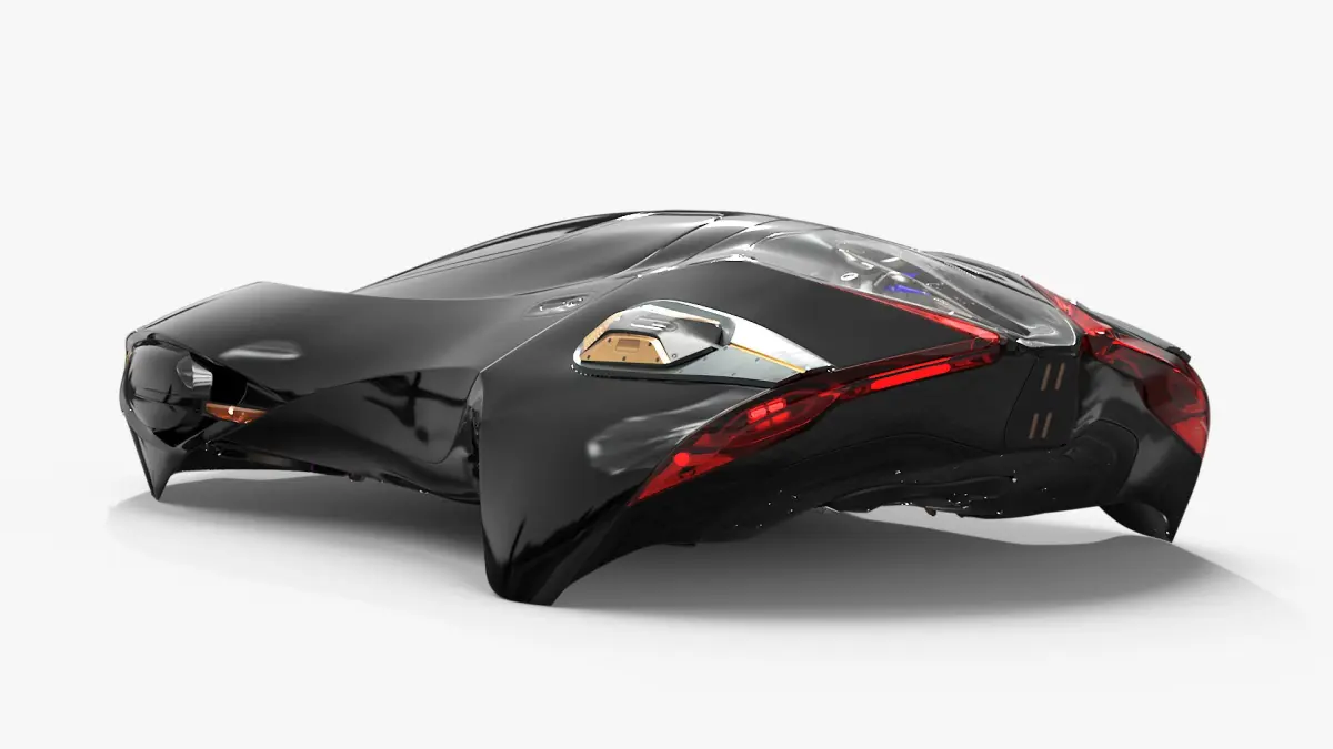Black Futuristic Urban Flying Car is a three-dimensional model of futuristic urban flying car, that is depicted as a sci-fi flying vehicle designed for efficient and advanced transportation in densely populated cities.