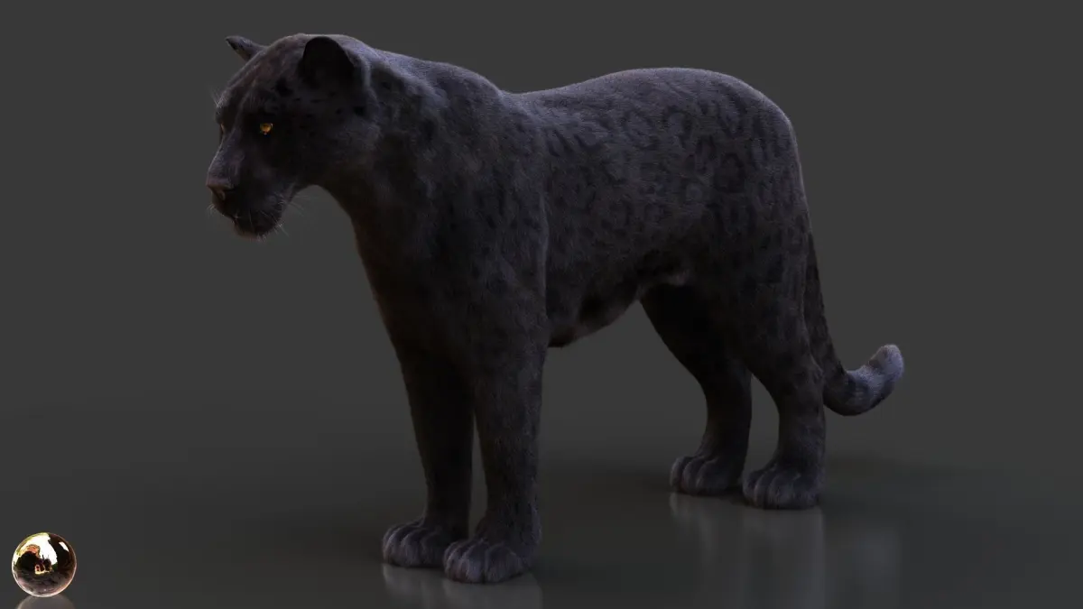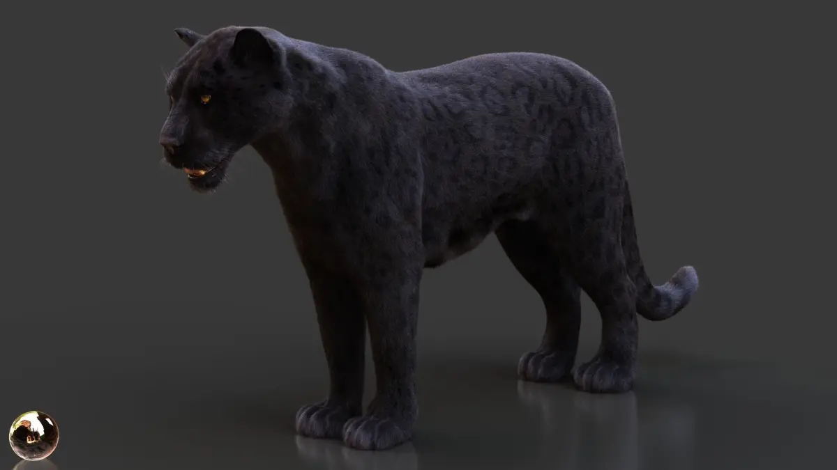 High Detailed Photorealistic Black Jaguar; UVunwrapped and smoothable, made with Maya. Xgen (CORE) for grooming.