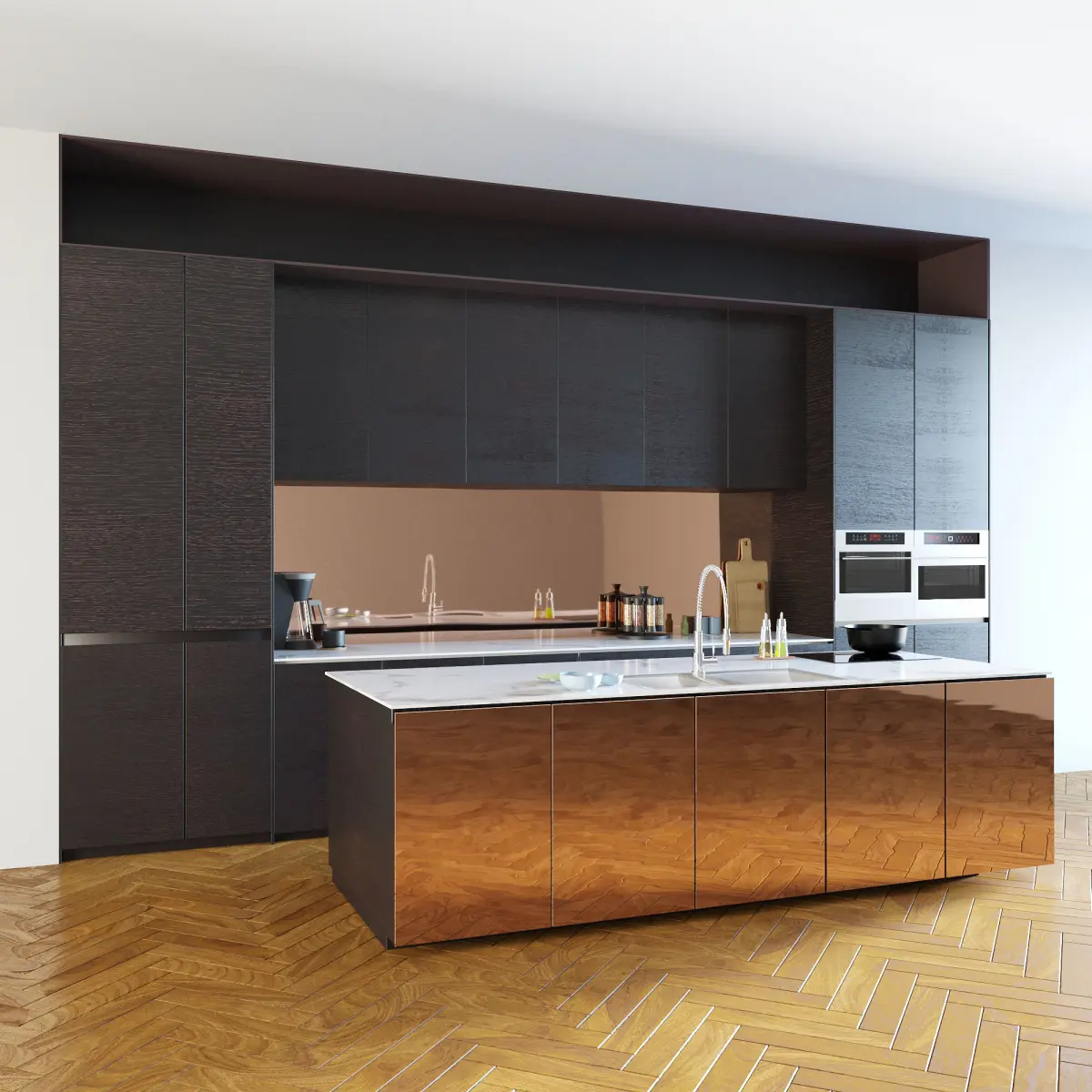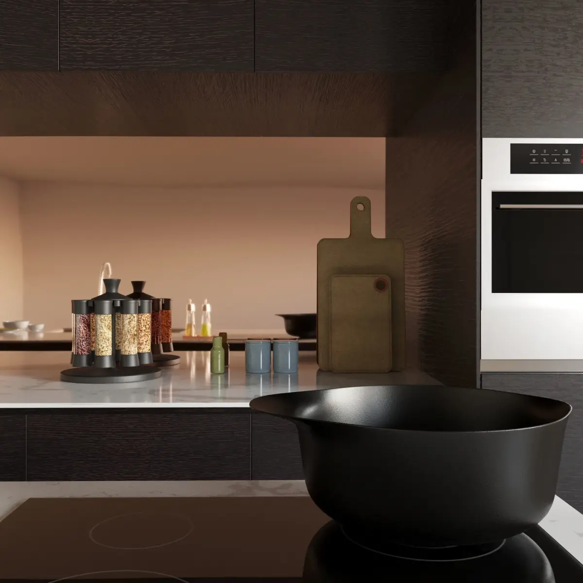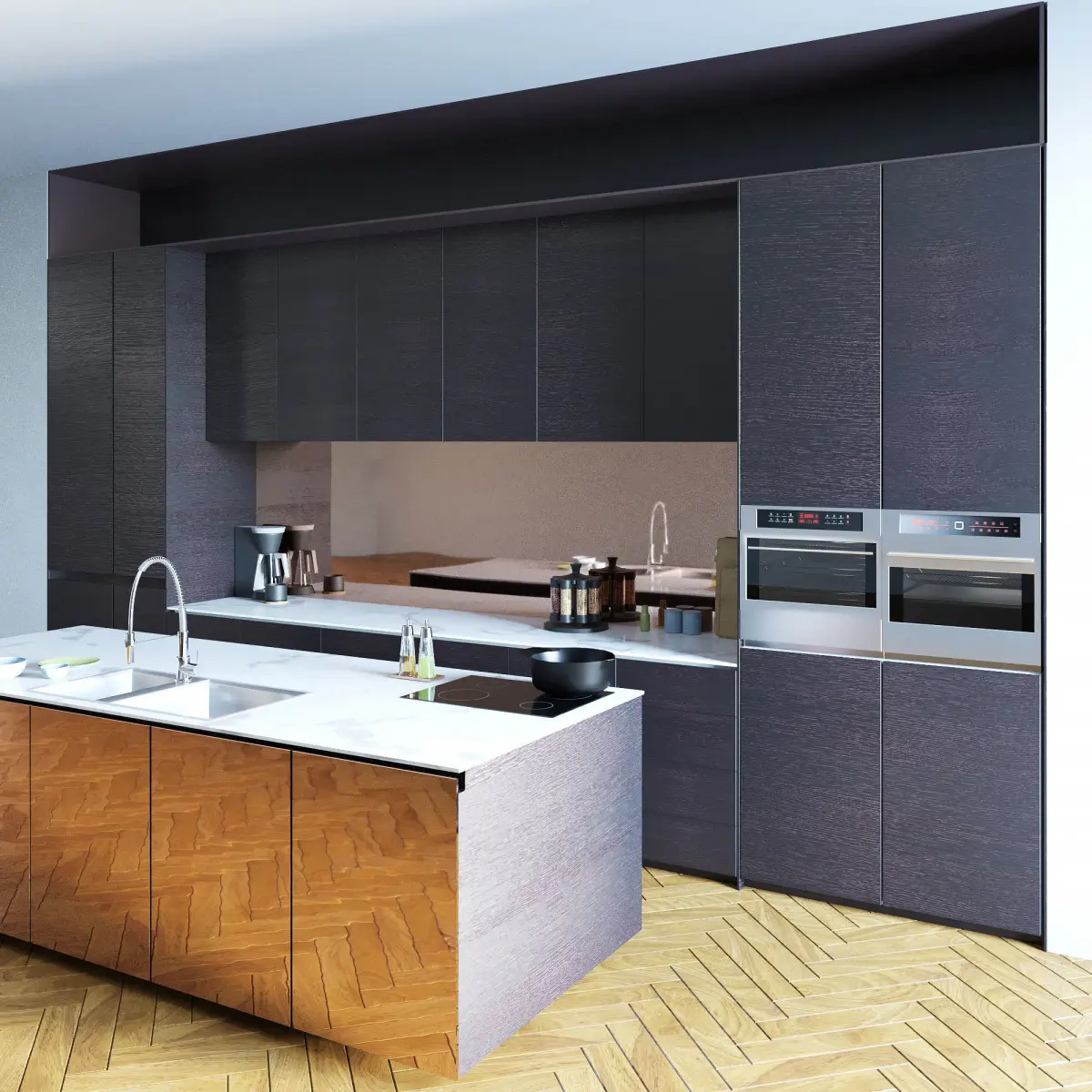 The kitchen is assembled in such a way that you can easily change it to your project.