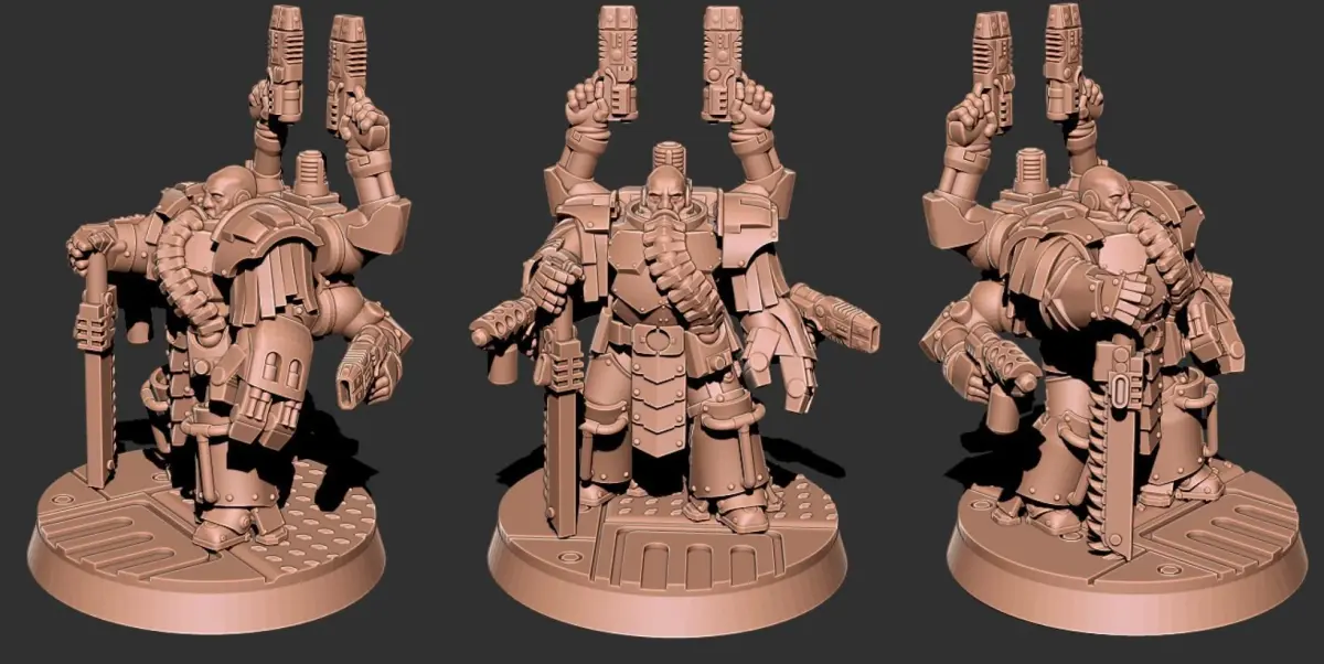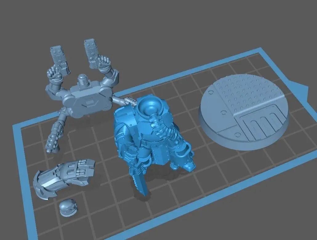 Also included is an unmerged version of the utility arms so that users may create their own poses. I would recommend using meshmixer to seperate the model shells and pose the arms and weapons.