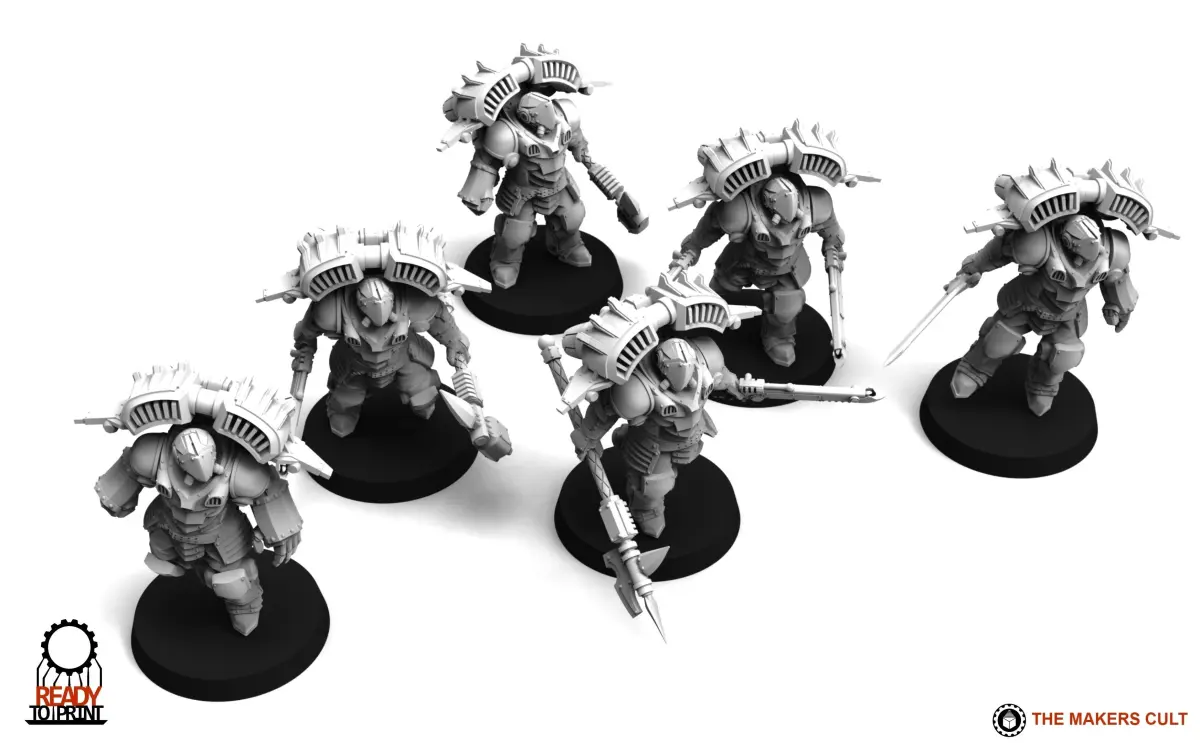 The Black Knights Hussars kit contains files for fully modular miniatures.Parts are also cross compatible with the Tempest Legion line of minatures, as well as previous Black Knights miniatures.