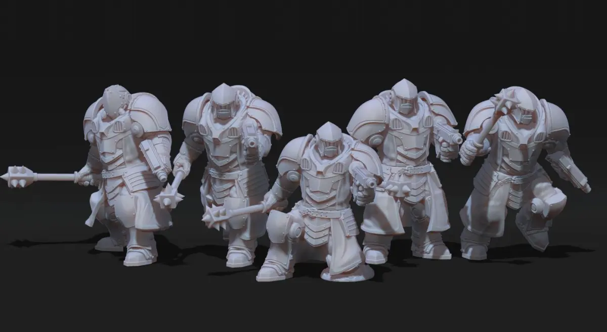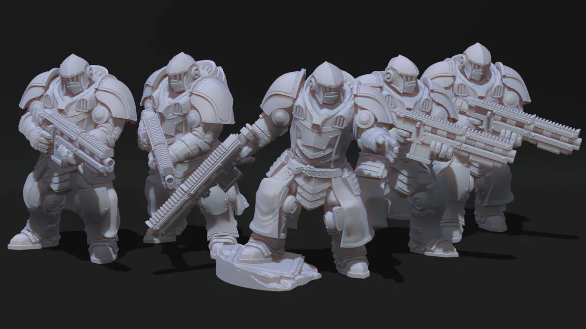 The Black Knights MK3 infantry kit contains files for fully modular miniatures . The kit comes with 10 leg poses, various melee and ranged arm options and alternate heads. Parts are also cross compatible with the Tempest Legion line of minatures, as well as previous Black Knights miniatures.
