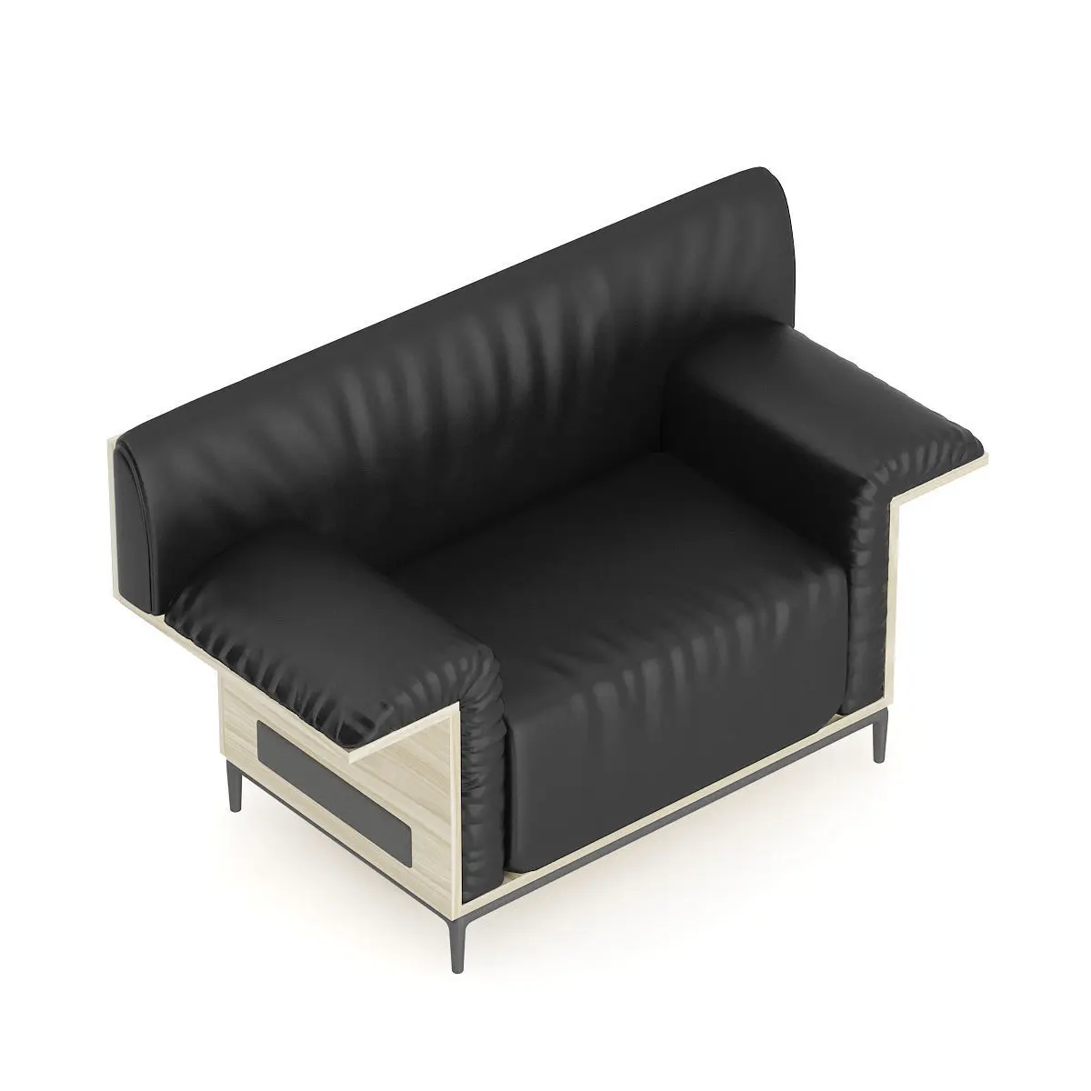 3d model of black leather armchair with light wooden back and sides. Compatible with 3ds max 2010 or higher and many others.