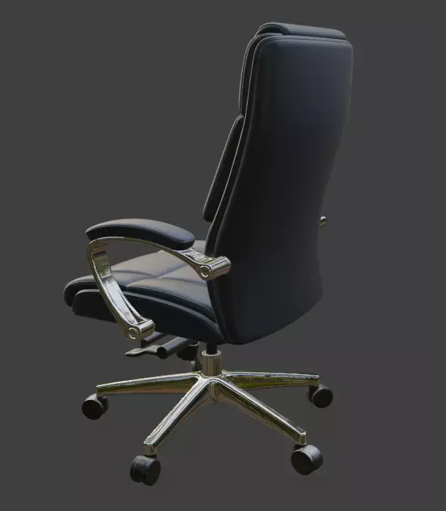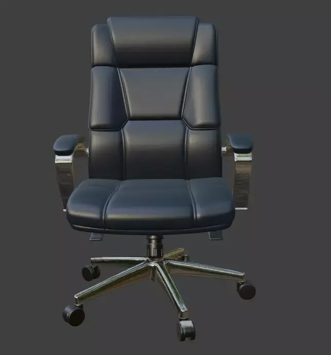 A highly detailed, production-ready 3D model of a premium modern executive office chair with black leather upholstery and polished chrome base. Perfect for architectural visualizations, office interior renders, game environments, VR/AR projects, or high-end product visualizations.This model features clean topology, fully unwrapped UVs, and PBR materials ready for any render engine. The leather material uses realistic textures including high-resolution diffuse, roughness, normal, and specular maps (4K). All parts are properly named and organized in logical groups for easy editing.