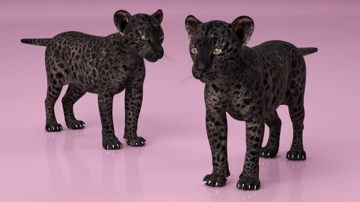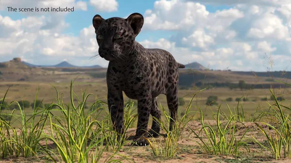 Black Leopard Cub Clawing Motion Animated Rigged is a three-dimensional model of cub (animal baby or animal child) of black leopard (Panthera pardus), that is one of the five extant cat species in the genus Panthera, and that can be found in Africa and Asia.