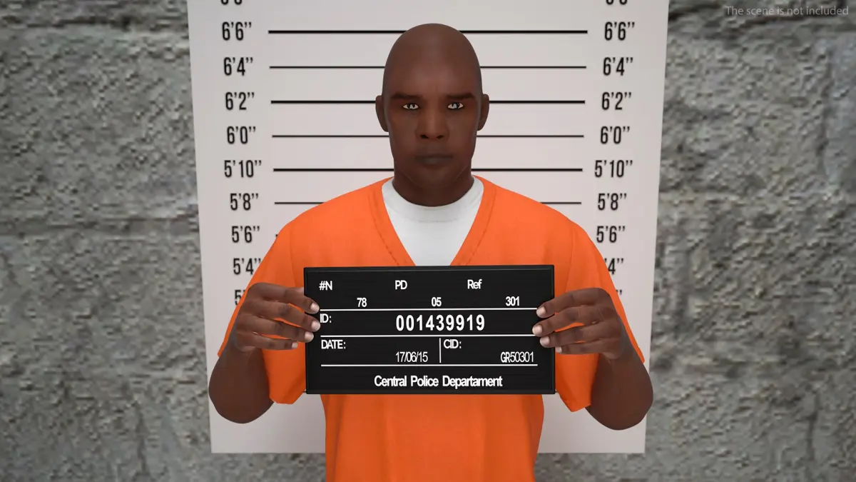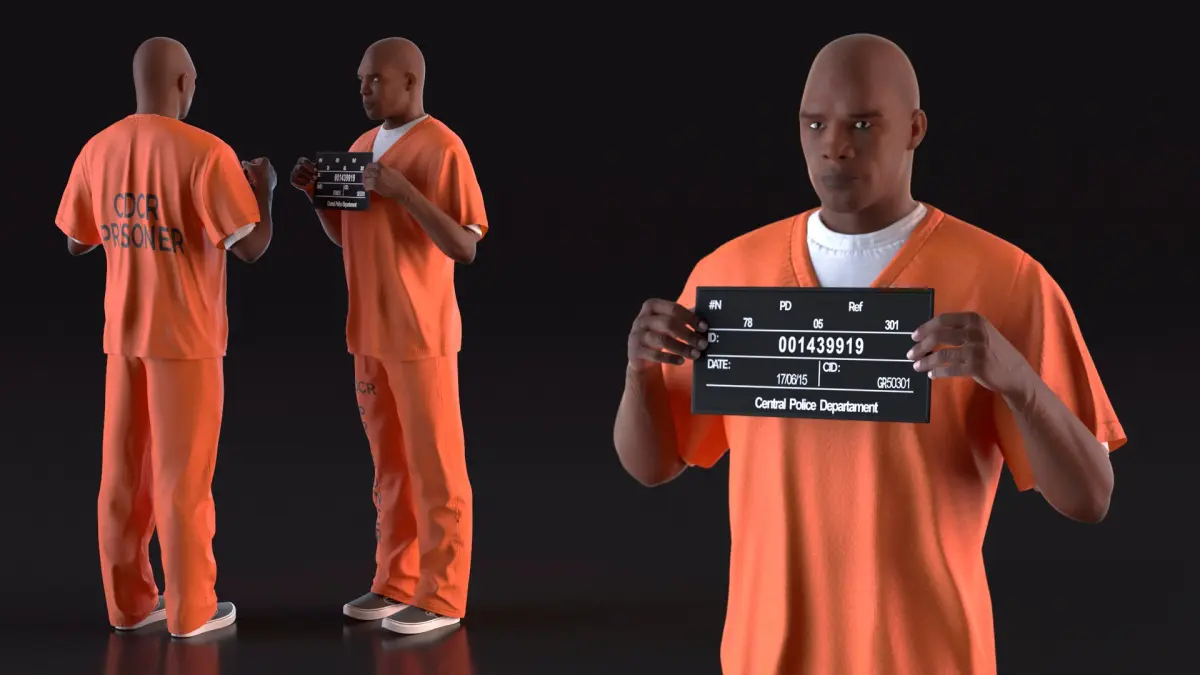 Black Male Prisoner with Mugshot Board is a high quality, photo real 3d model that will enhance detail and realism to any of your rendering projects. The model has a fully textured, detailed design that allows for close-up renders, and was originally modeled in 3ds Max 2020 and rendered with V-Ray. Renders have no postprocessing!
