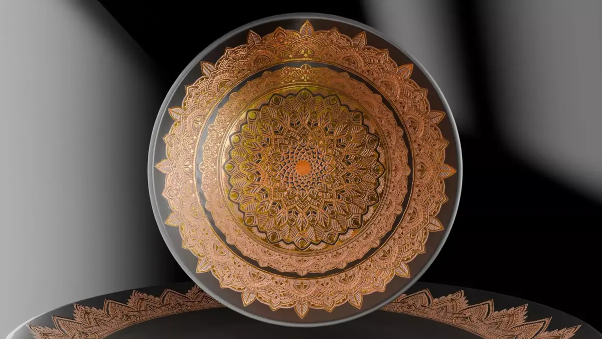 Mandala Plate Vertices: 2,354Edges: 7,056Faces: 4,704Triangles: 4,704