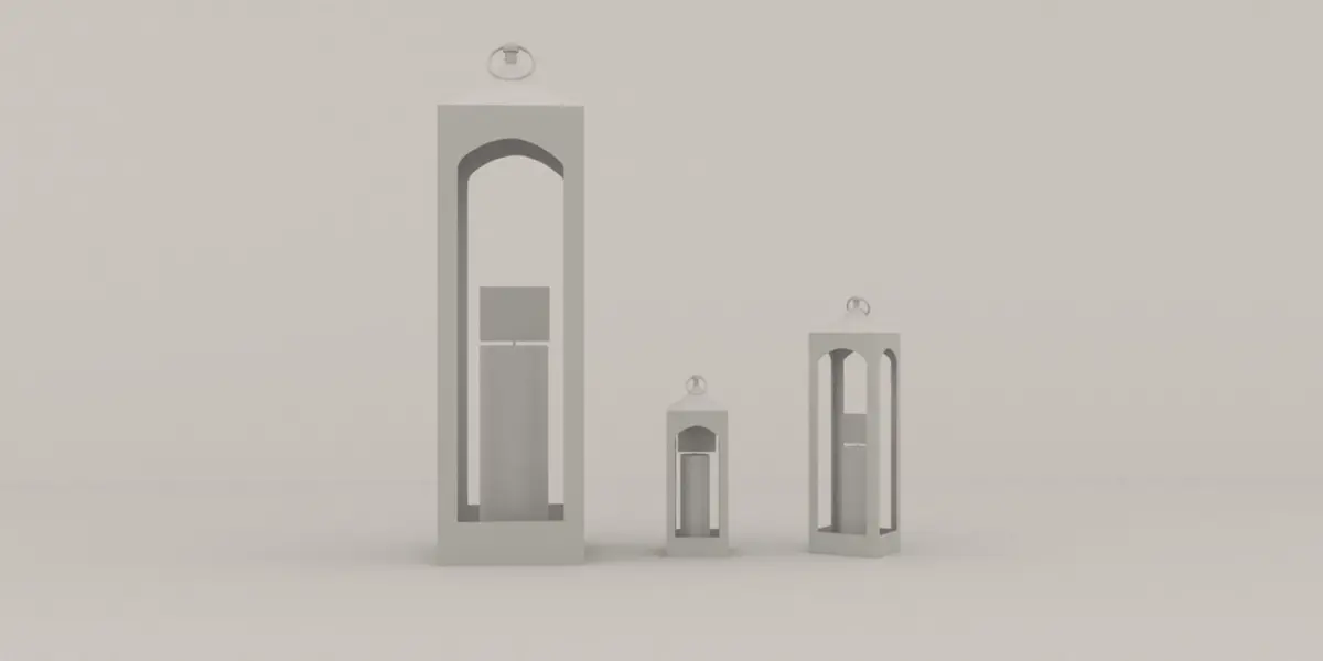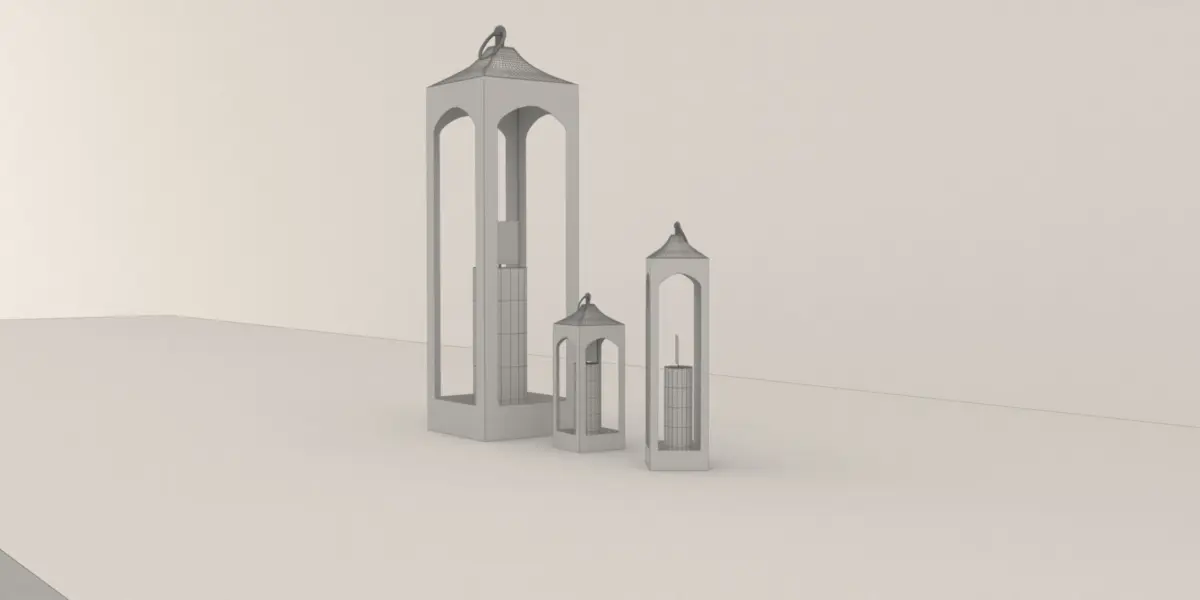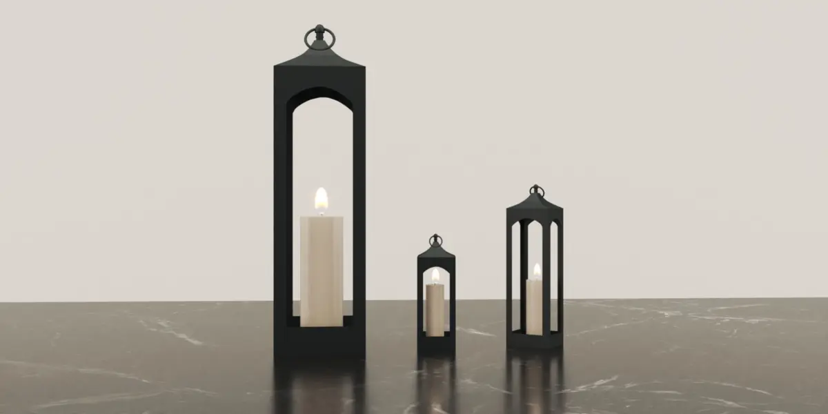 High-quality metal indoor/outdoor lantern with candle 3D model which is based on the Caleb Handcrafted Metal Lantern available in Pottery Barn. 3 size variances available. Originally modelled in 3ds Max and rendered with V-Ray