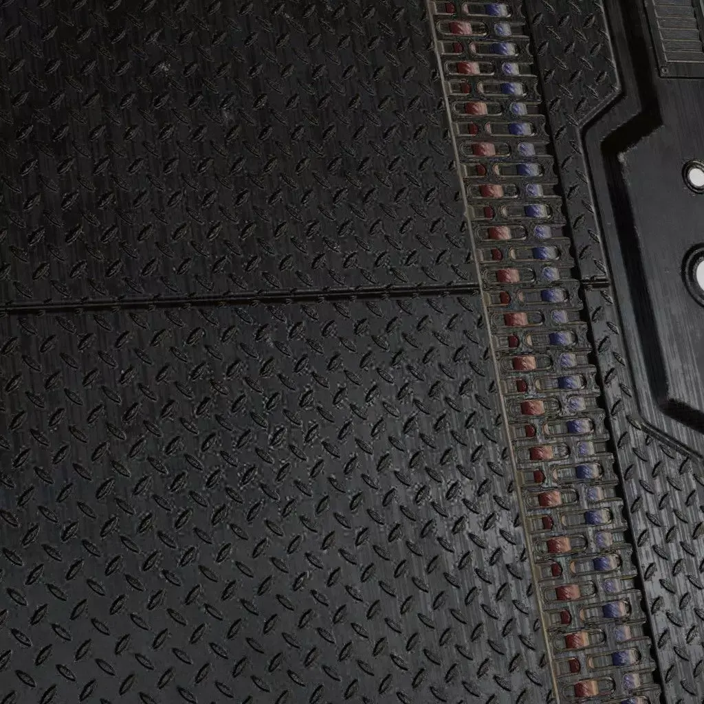 This is a high-quality PBR Texture Pack of a Black Metal Plate surface. All essential Maps, including BaseColor, Normal, Roughness, Height, and Metallic, are provided to deliver a highly realistic and heavy-duty industrial finish. This material features a classic diamond plate or tread plate pattern, with raised slip-resistant lugs embossed onto a solid black metallic base. The surface is detailed with realistic micro-abrasions, subtle oil sheen, and fine dust particles, making it an ideal choice for industrial flooring, vehicle running boards, loading docks, safety stairs, or rugged urban environment assets.