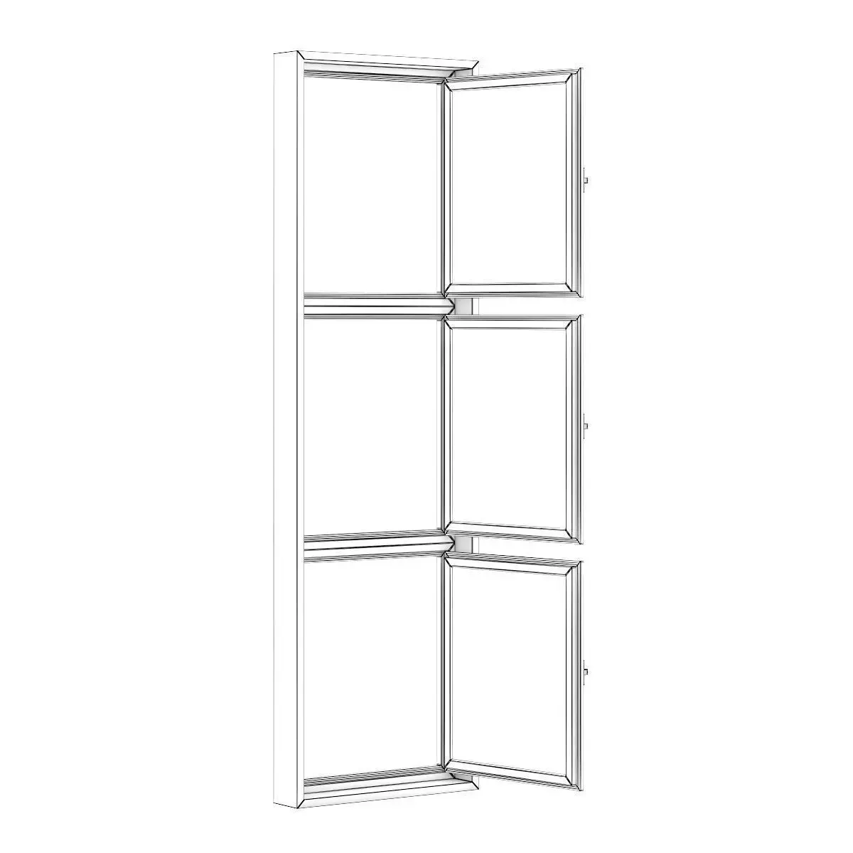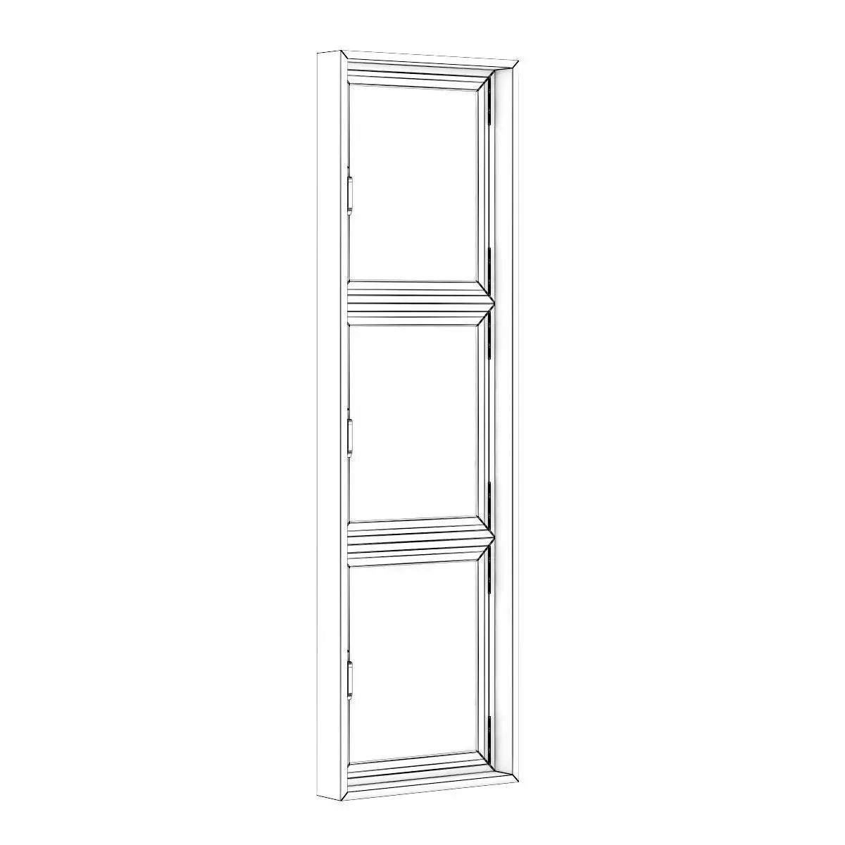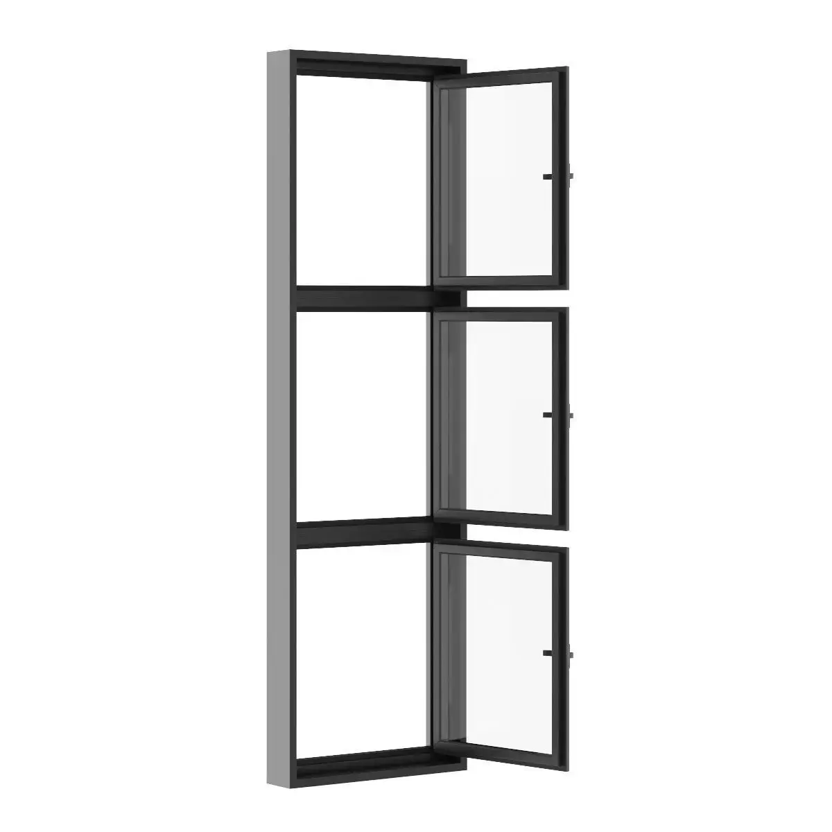 3D model of openable black metal window. Dimensions: 800mm x 2700mm.