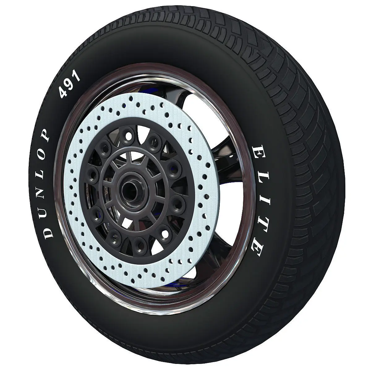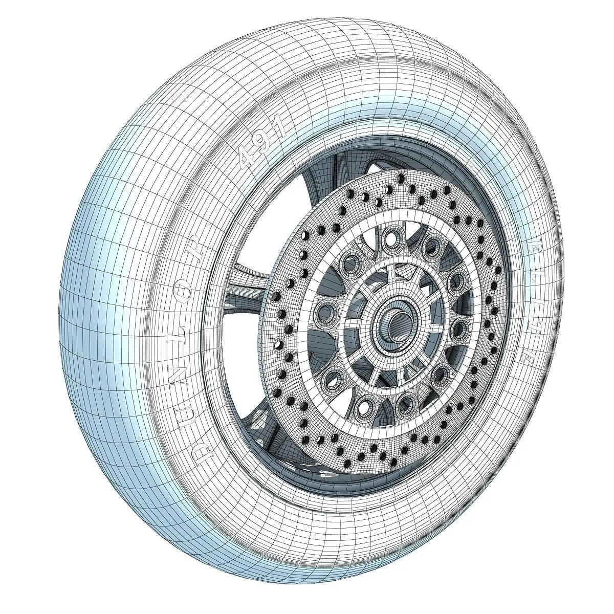 Detailed 3d model of a motorcycle tire.Diffuse and Bump map are 4096 x 4096 px. Materials might need to be re-assigned for other applications.Previews rendered with V-Ray.HDRI map not included.