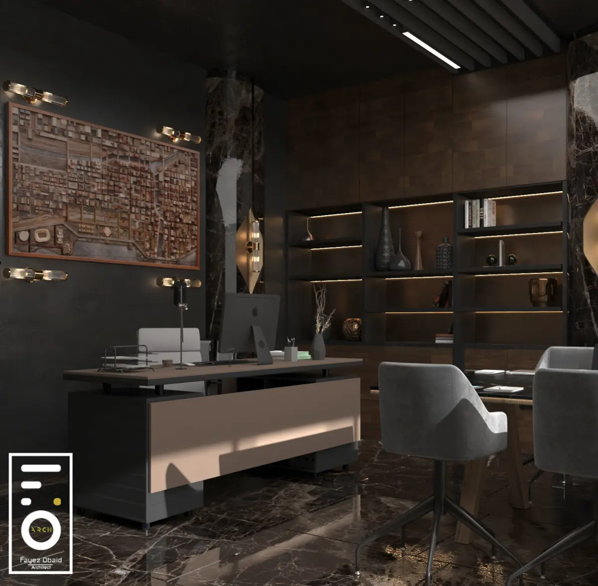 SCENE OF BLACK OFFICE WITH MATERIALS AND LIGHTING AND RENDER SETTINGS WITH 3DS MAX AND VRAY.SCENE OF BLACK OFFICE WITH MATERIALS AND LIGHTING AND RENDER SETTINGS WITH 3DS MAX AND VRAY
