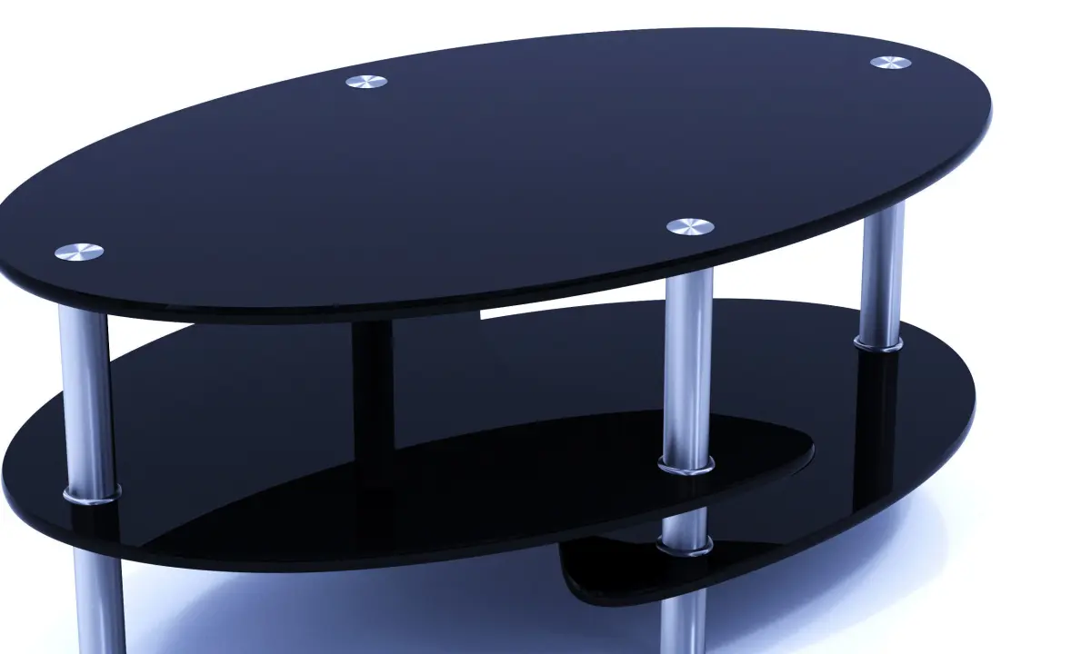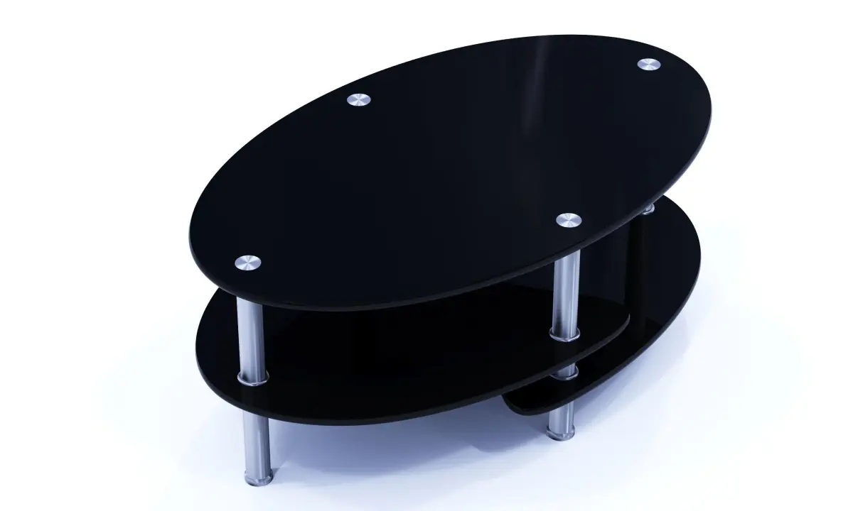 New style living room furniture tempered black painting glass coffee table with High Gloss Stainless Steel Legs