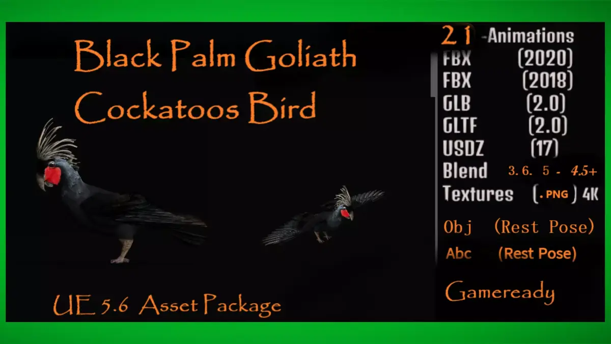 The palm cockatoo, also known as the goliath cockatoo or great black cockatoo, is a large, smoky-grey/black parrot of the cockatoo family native to New Guinea, the Aru Islands and the Cape York Peninsula in Queensland, Australia...3D Palm Black goliath cockatoo Bird Animal Model By Nyilonelycompany (nyc).
