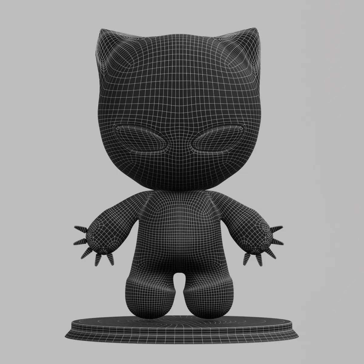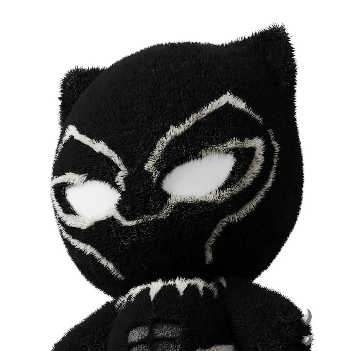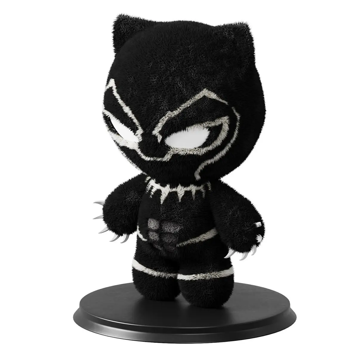 Realistic 3D model of a soft wool toy in the form of a black panther. It is ideal for use in projects related to children's games, interiors, animation or visualization of products. The model is made with high detail, including the texture of wool, realistic folds and soft body shapes.