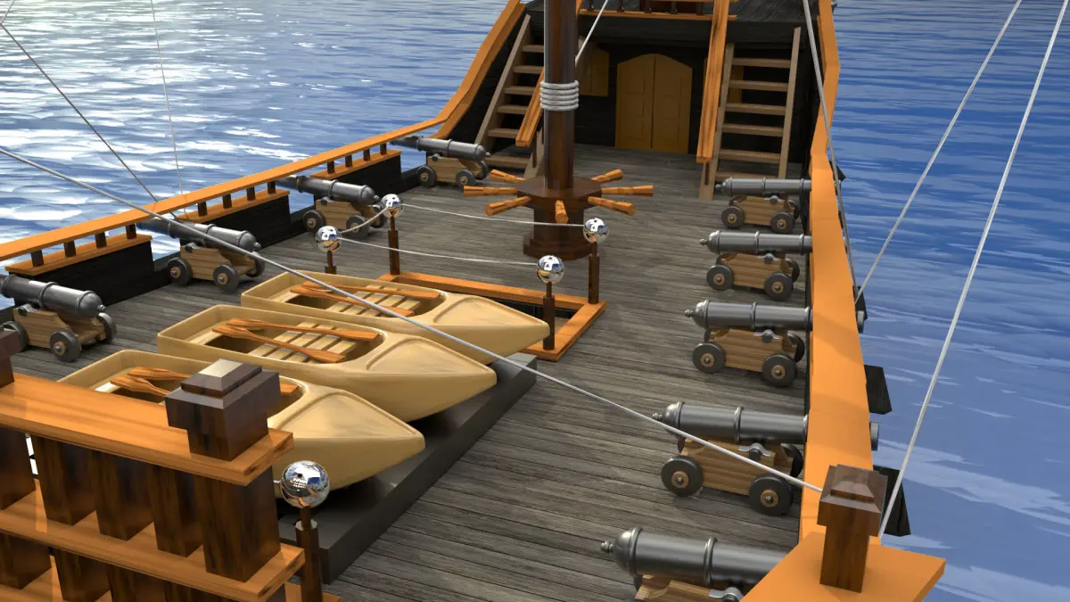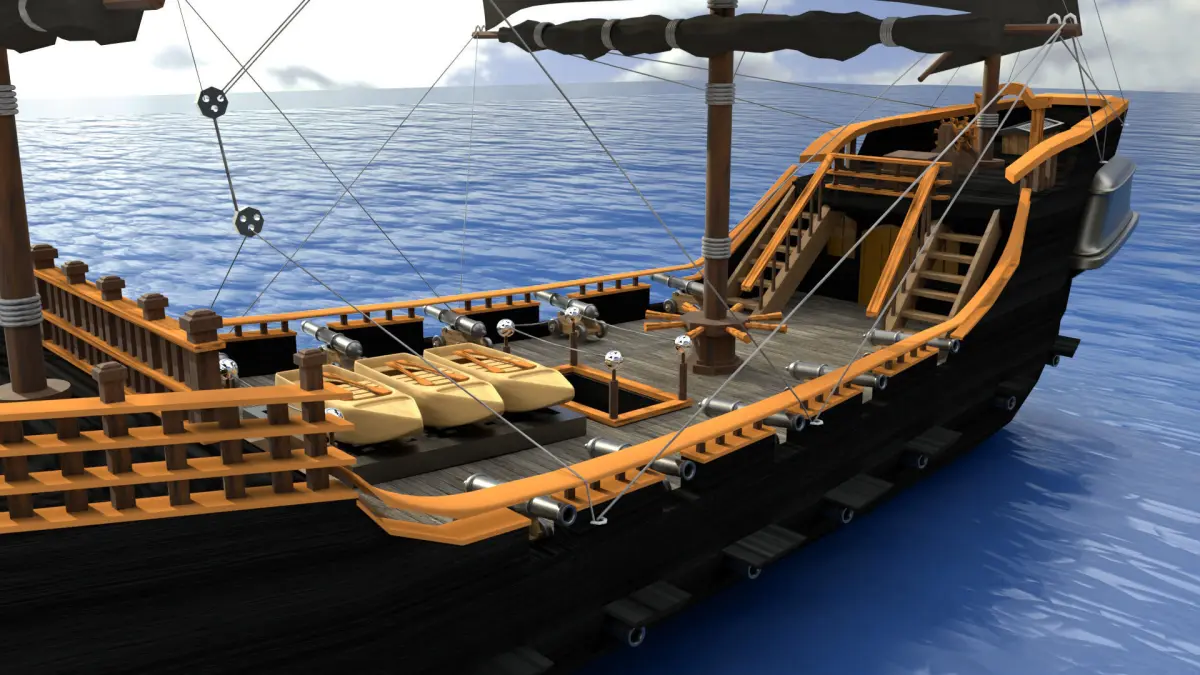 This model is done in maya 3d 2020 and render in arnold renderer. This is a 3d model of black pearl.this model can be used in 3d games and animated movie . This model is of pirates of caribbean movie