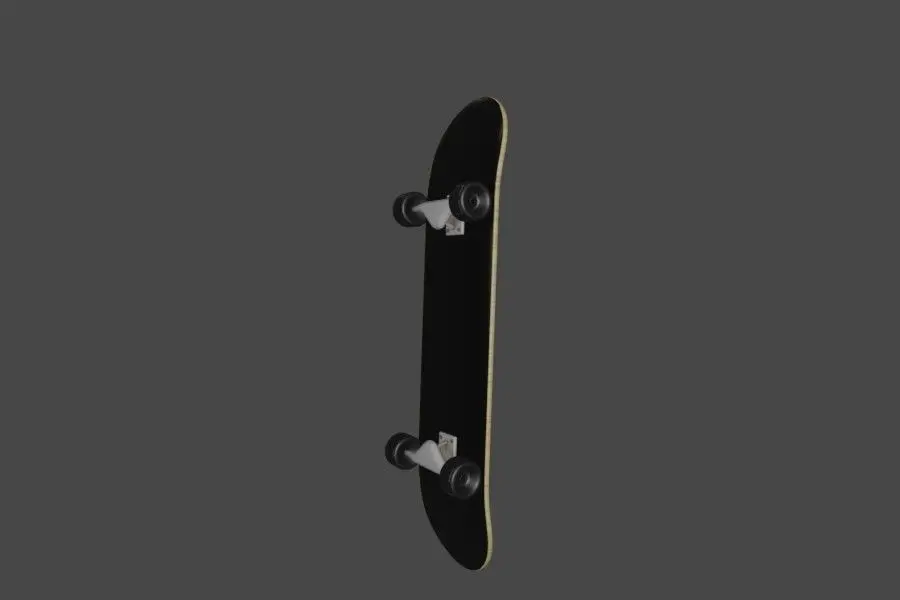 Black skateboard, tires dont move.can be animated , used in backgrounds and animated without trucks moving.Intended for brands and companies and architects to use in backgrounds of interiors.High Quality in a lot of formats!