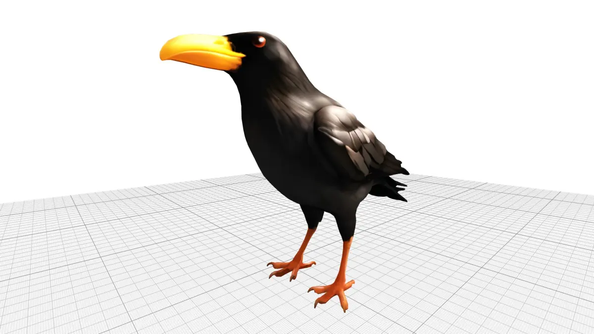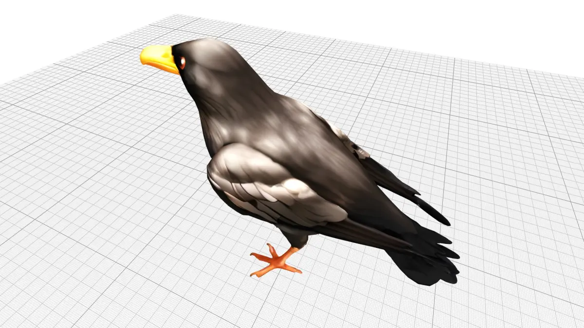 This is a detailed 3D model of a black raven crow, embodying mystery and intelligence. With its glossy black feathers, piercing eyes, and distinct yellow beak and legs, this model adds an aura of enigma and elegance to any digital project. Ideal for game design, virtual worlds, or animations, This captures the essence of a raven's sleek beauty, making it a standout choice for creators seeking a realistic yet stylized avian character. Its intricate feather detailing and lifelike stance make it a versatile asset for dark, mystical, or nature-inspired scenes.