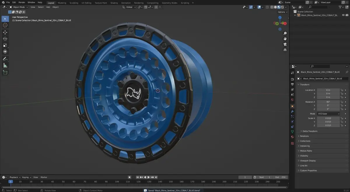 - Detailed Model of the Black Rhino Sentinel Cobalt Blue Rim.