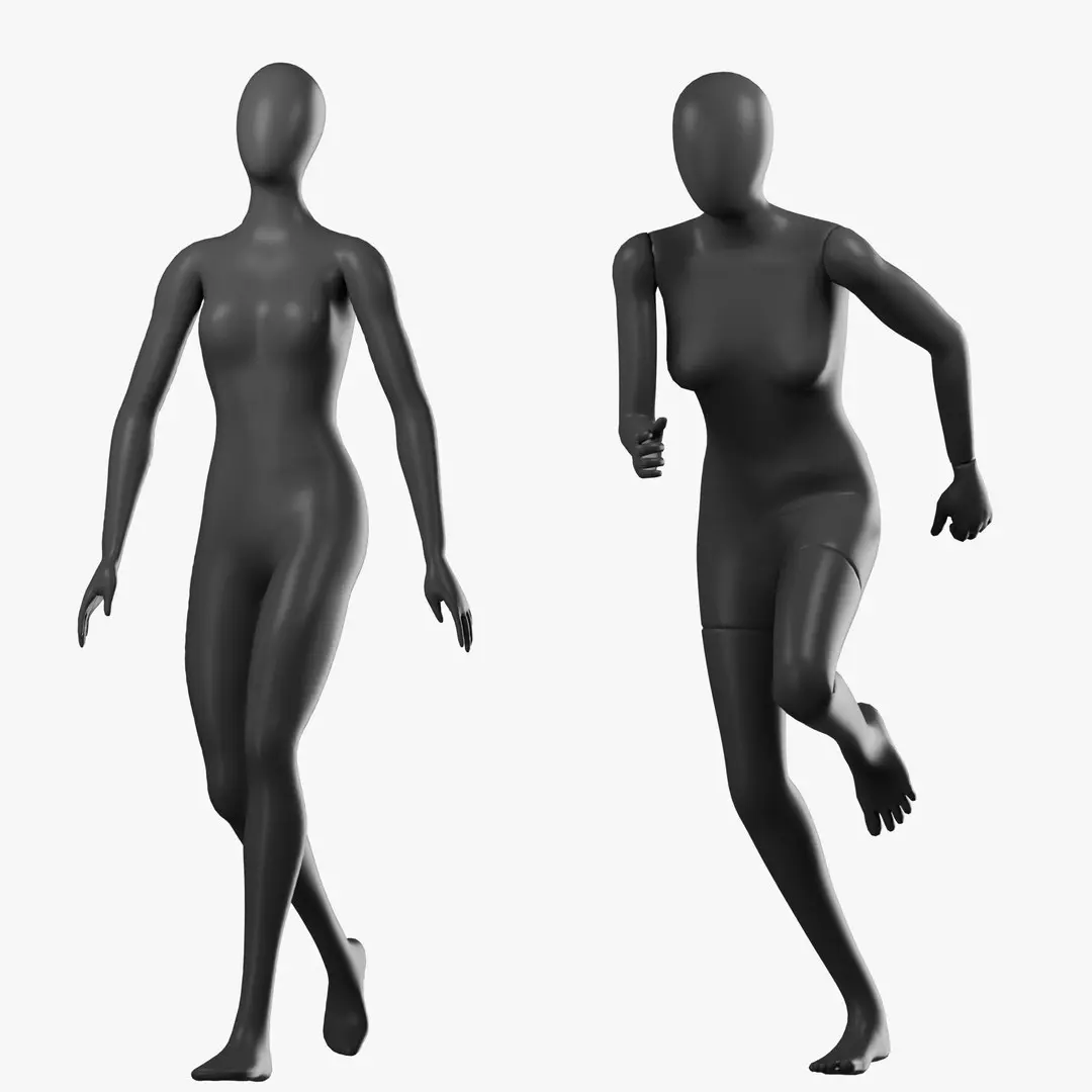 Black Rigged Simple and Sport Female Mannequins