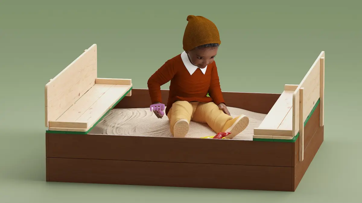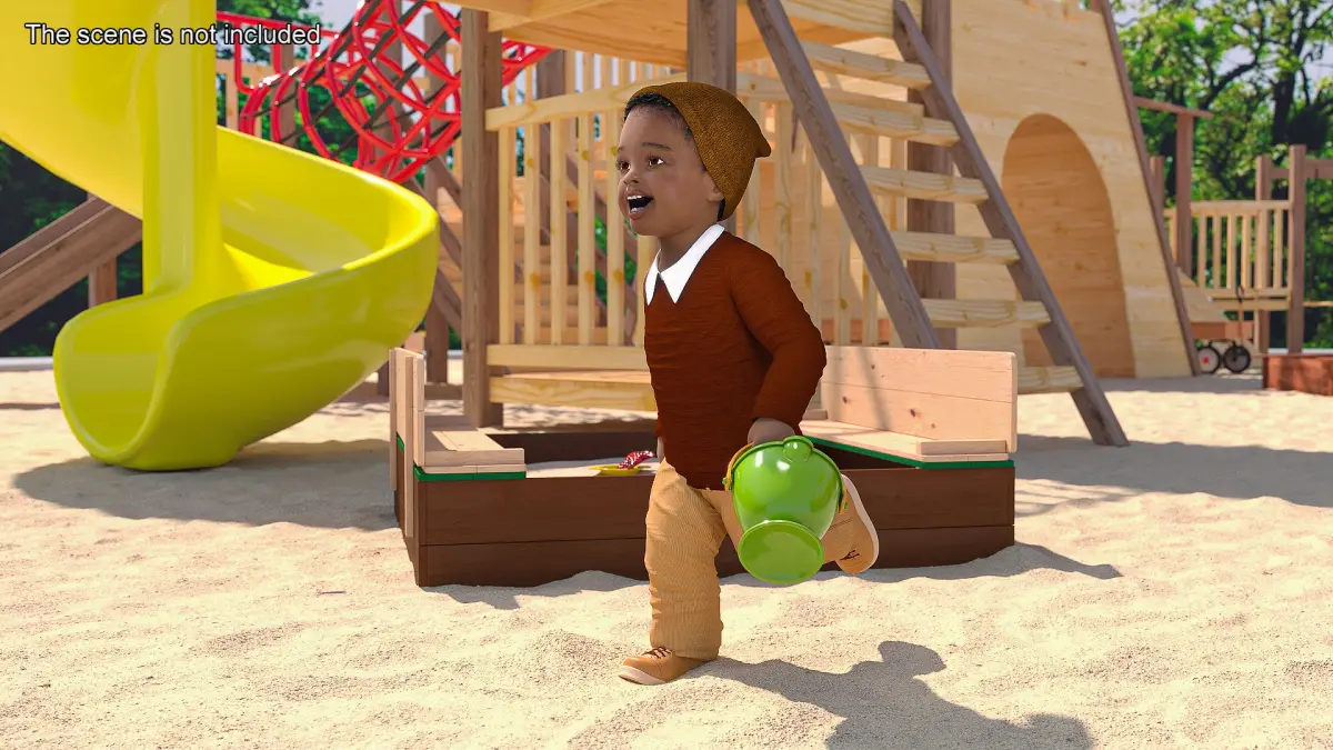 Black Skinned Toddler Boy in Sandpit Rigged is a three-dimensional model of Black toddler boy ( human male kid) who is an Afro-American baby (little boy) kid, and who is a baby boy (human infant or male child in the early stages of life).