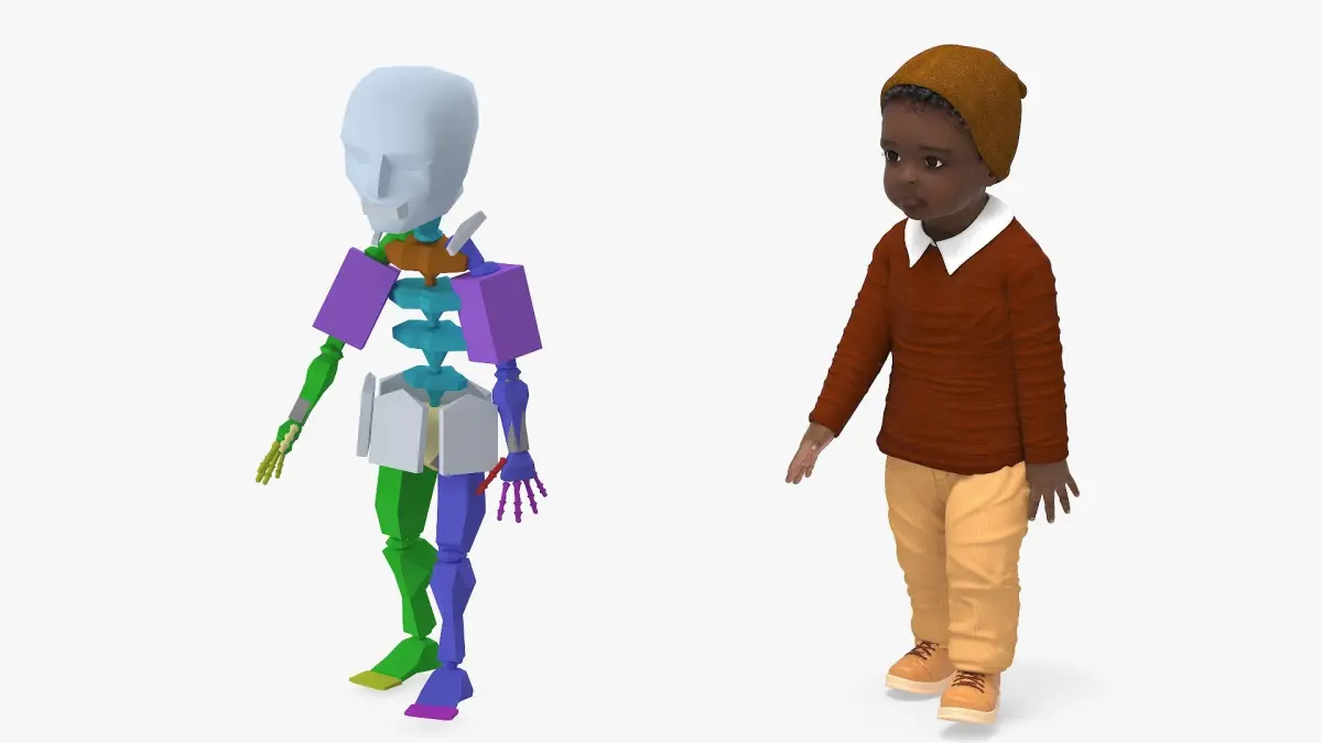 Black Skinned Toddler Boy in Sandpit Rigged is fully rigged and is ready to be animated. You can easily position it the way you need or animate it the way your project requires using helpers in 3D Studio Max. See the turntable to get an idea of how rigging works.